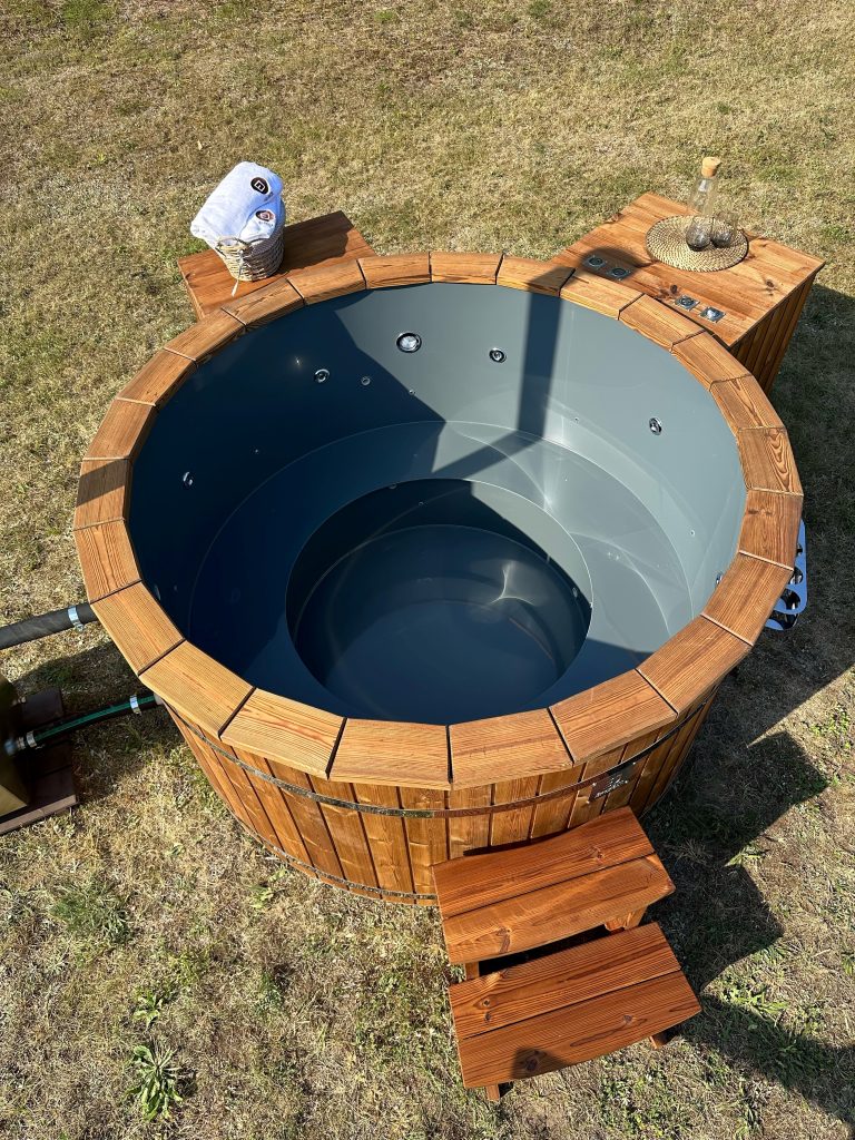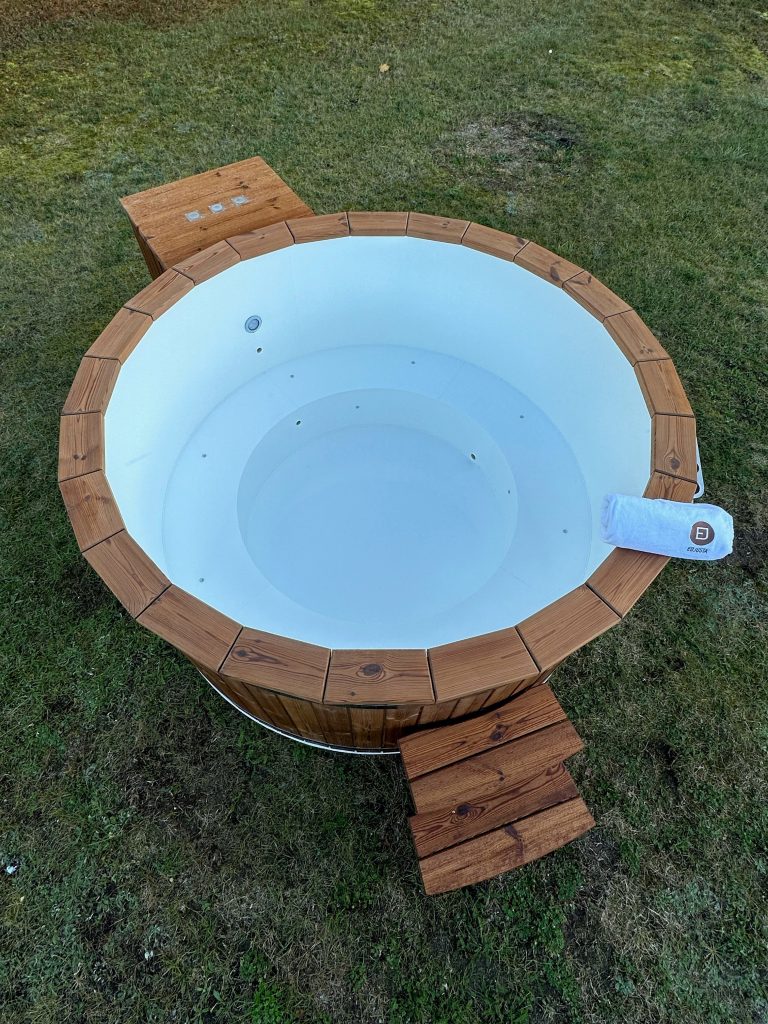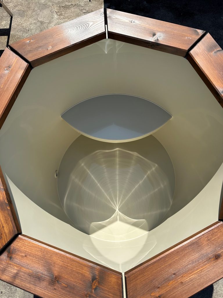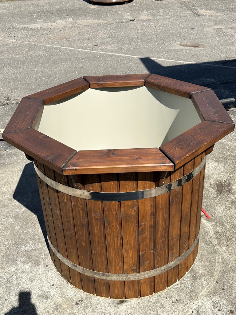 Šie kubilai turi plastikinius įdėklus, pagamintus iš aukštos kokybės polipropileno, kuris naudojamas lauko baseinams gaminti. Jis atsparus šalčiui, UV spinduliams ir kitiems aplinkos poveikiams. Plastikiniai kubilai yra higieniškesni, nei mediniai kubilai, nes kiekvieną kartą panaudoję kubilą galite išleisti vandenį iš jo, tuo pačiu išlaikant tą pačią natūralią medinio kubilo išvaizdą iš išorės.