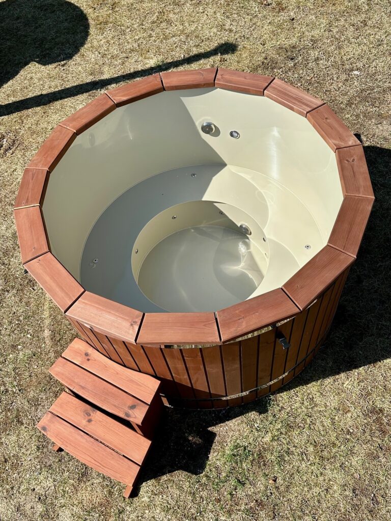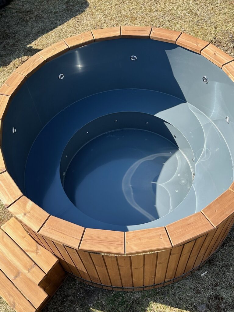 Šie kubilai turi plastikinius įdėklus, pagamintus iš aukštos kokybės polipropileno, kuris naudojamas lauko baseinams gaminti. Jis atsparus šalčiui, UV spinduliams ir kitiems aplinkos poveikiams. Plastikiniai kubilai yra higieniškesni, nei mediniai kubilai, nes kiekvieną kartą panaudoję kubilą galite išleisti vandenį iš jo, tuo pačiu išlaikant tą pačią natūralią medinio kubilo išvaizdą iš išorės.