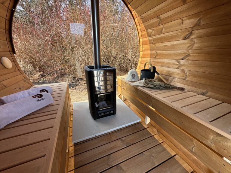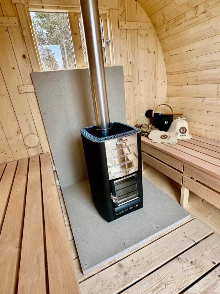 - Malkų krosnelė su išorės pakūra lauke arba persirengimo kambaryje.