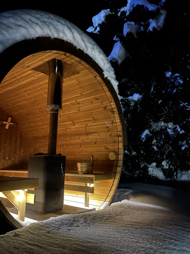 - LED apšvietimas po suolais saunos patalpoje.