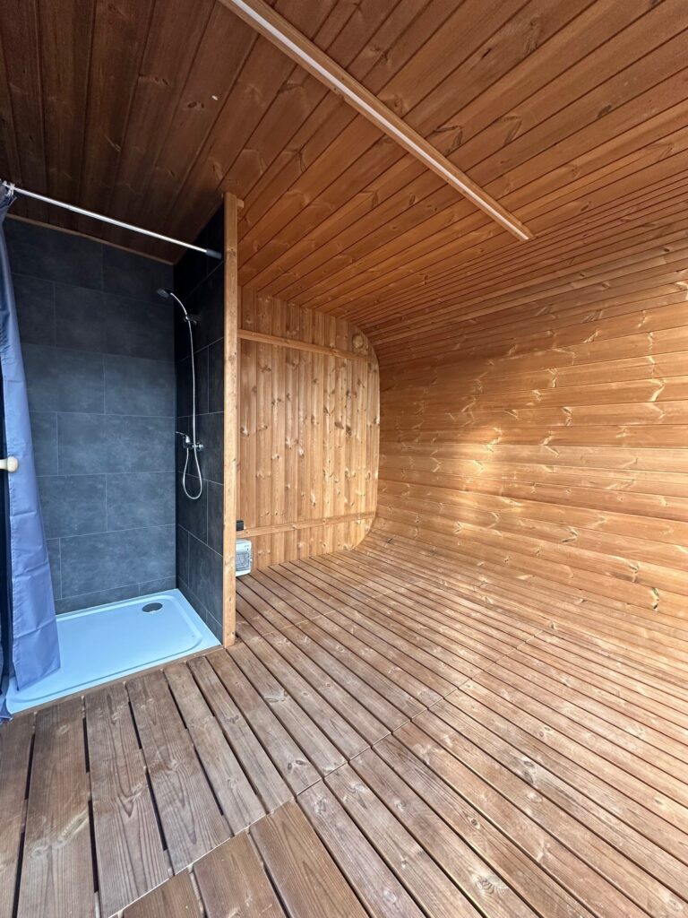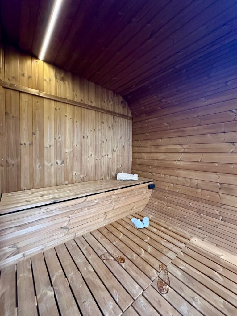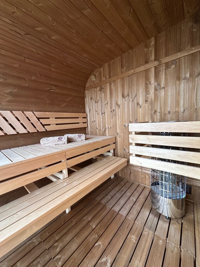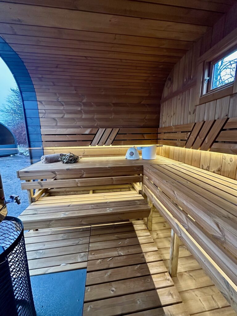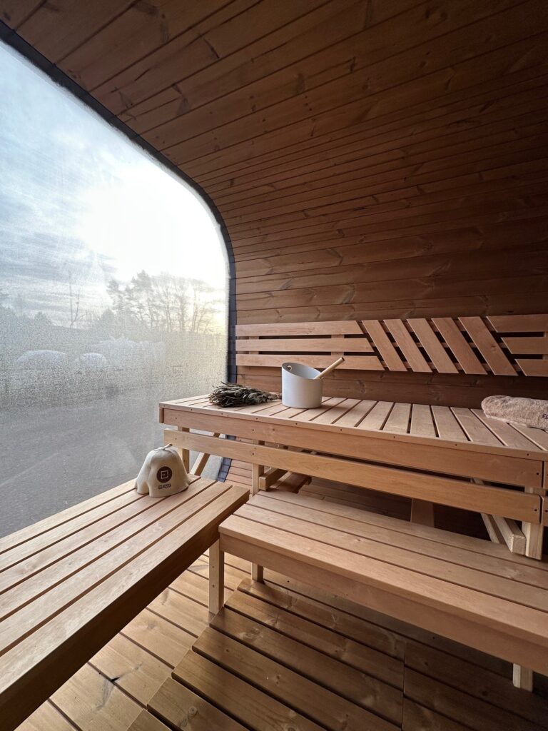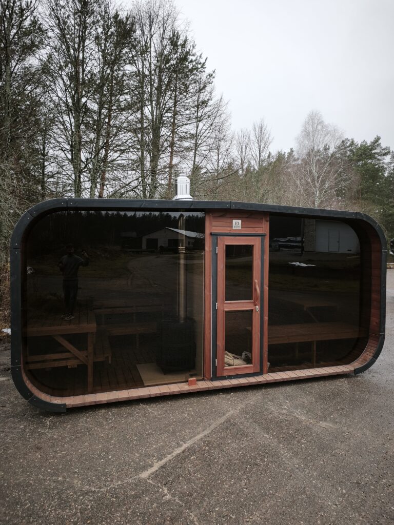 Ergonomiškas dizainas, kuriame kiekviena detalė apgalvota patogumui ir poilsiui. Patogus gultų išdėstymas, optimalus šilumos pasiskirstymas ir natūralių medžiagų apdaila sukuria jaukią, sveikatai palankią aplinką. Panoraminiai langai atveria kvapą gniaužiantį vaizdą į gamtą, leidžia mėgautis saulėlydžiais ar snieguotais peizažais, kartu išlaikant šilumos komfortą ir intymumą. Tai pirtis, kurioje dera funkcionalumas, estetika ir poilsio kokybė.