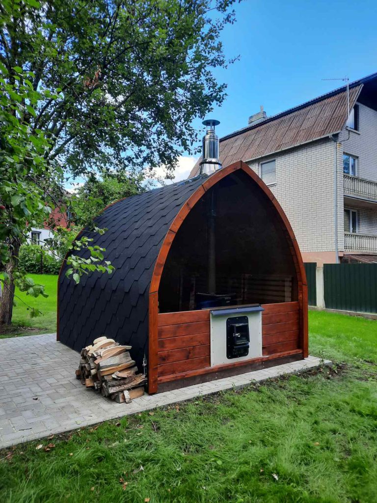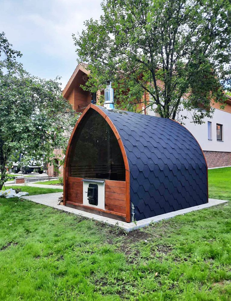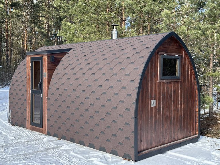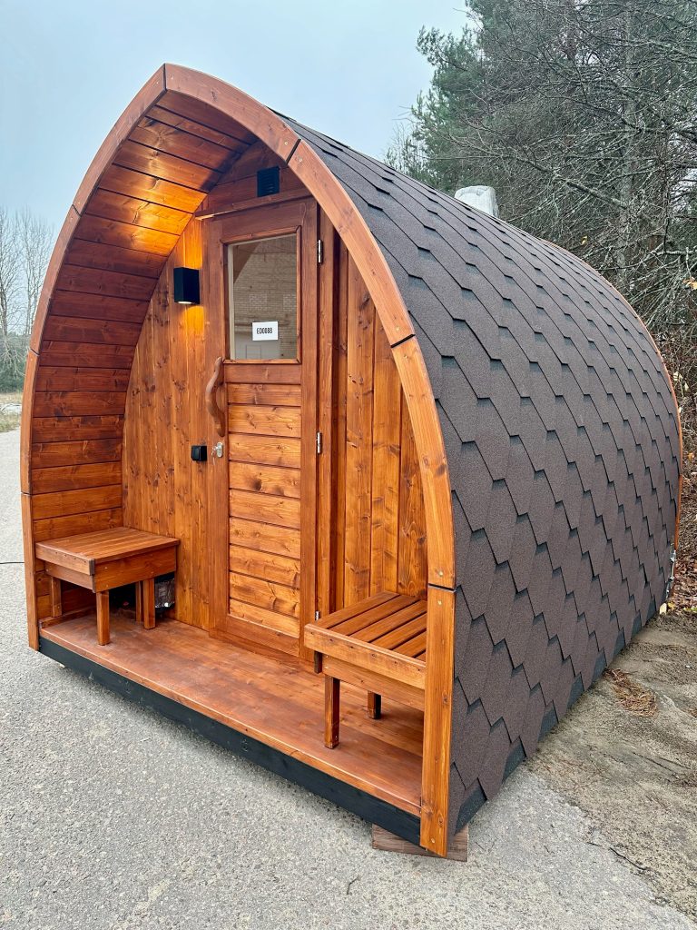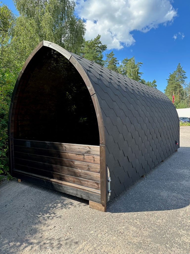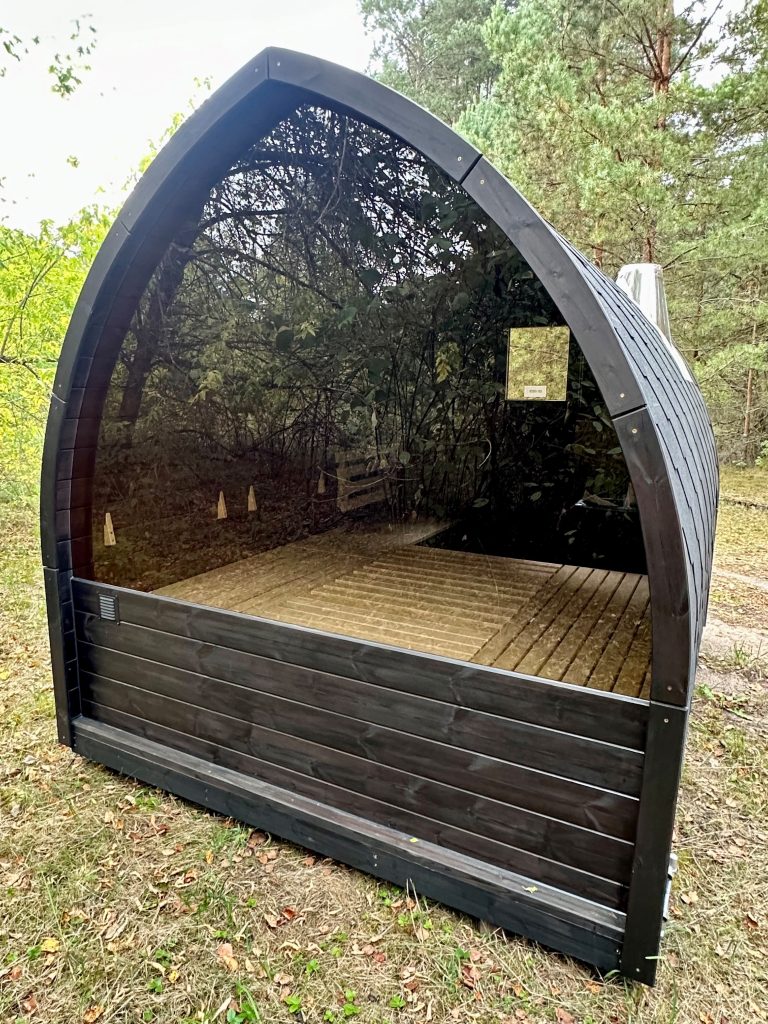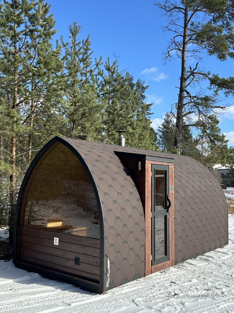 Išskirtinis dizainas, kuris paįvairins jūsų miesto namo, kotedžo, ar sodybos prie ežero aplinką. Trikampio formos iglu pirtis pasižymi netradiciniu stiliumi ir išplanavimu, sukuriančiu novatorišką atmosferą. Tokios formos pirtys būna įvairių dydžių ir turi suoliukus su atlošais nugarai.