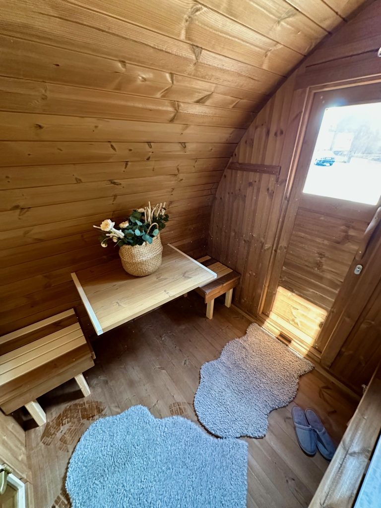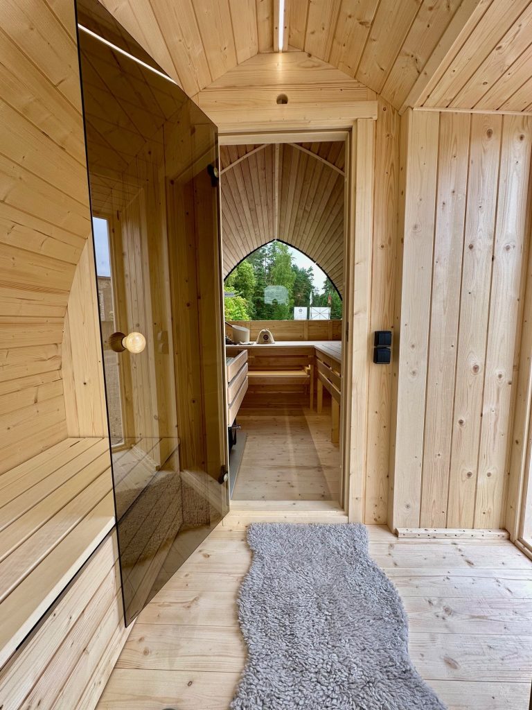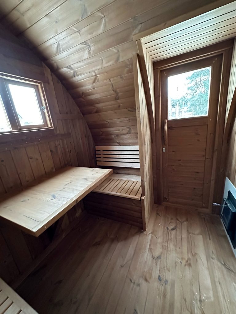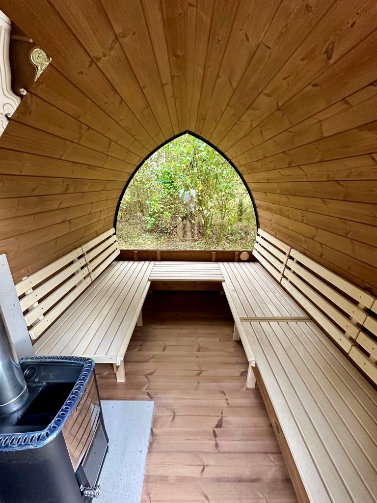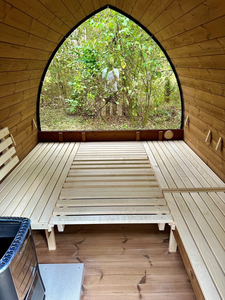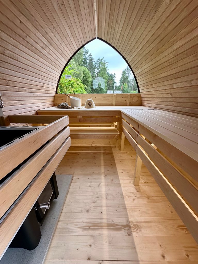 Išskirtinis dizainas, kuris paįvairins jūsų miesto namo, kotedžo, ar sodybos prie ežero aplinką. Trikampio formos iglu pirtis pasižymi netradiciniu stiliumi ir išplanavimu, sukuriančiu novatorišką atmosferą. Tokios formos pirtys būna įvairių dydžių ir turi suoliukus su atlošais nugarai.