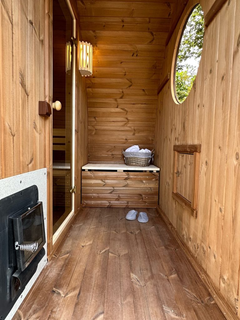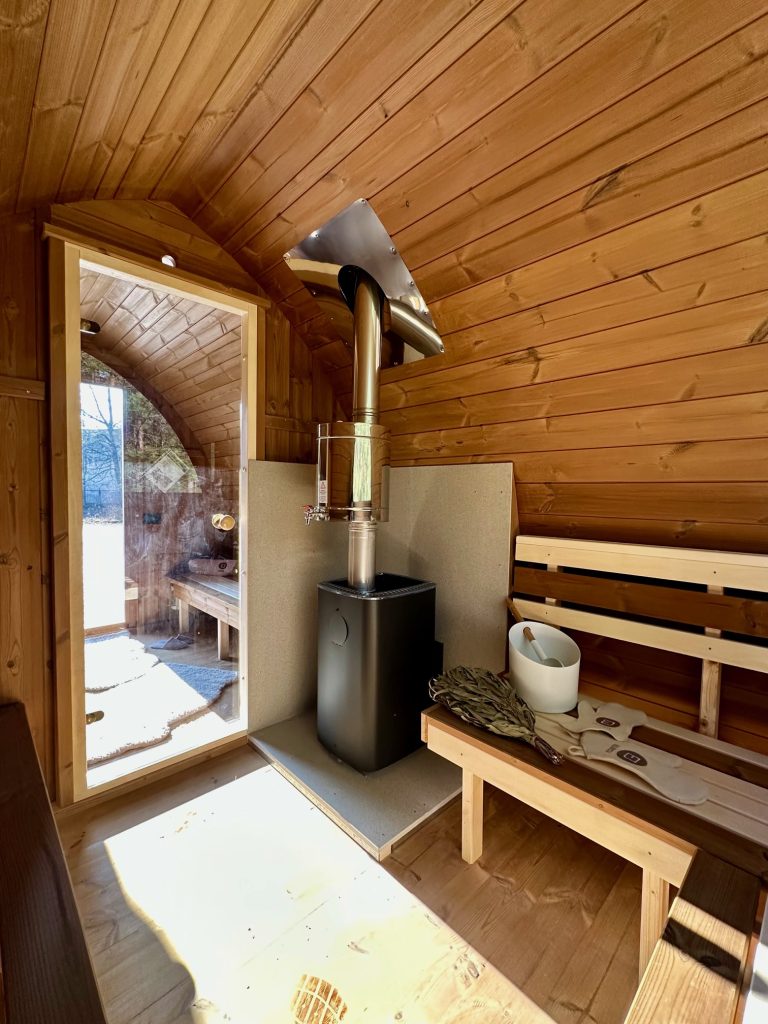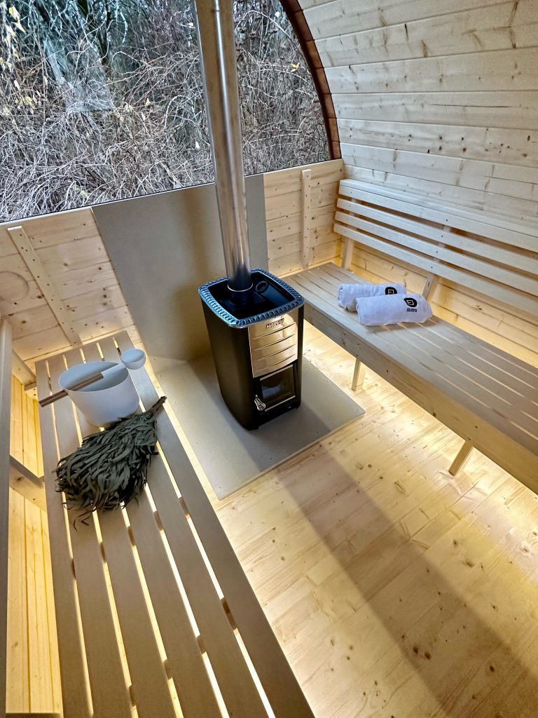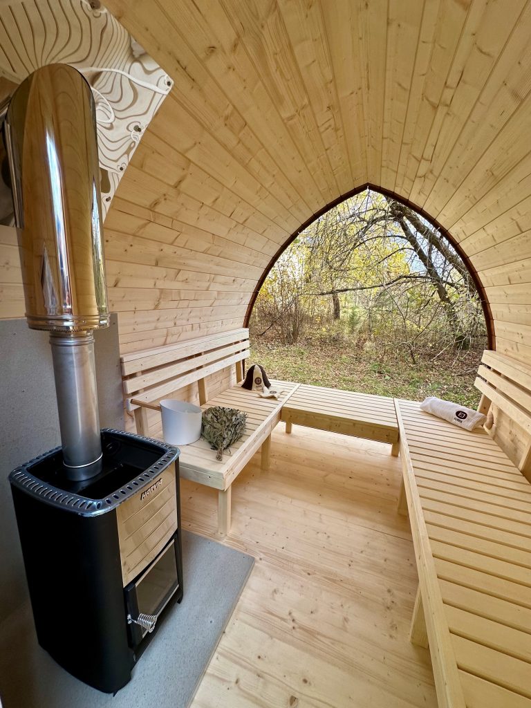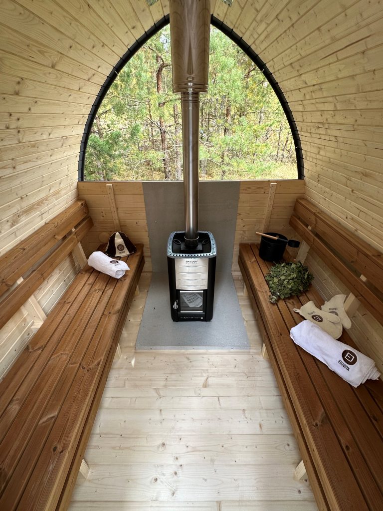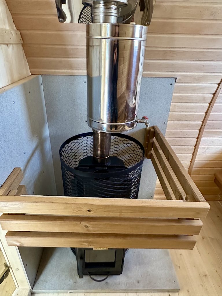 - Malkų krosnelė su išorės pakūra lauke arba persirengimo kambaryje.