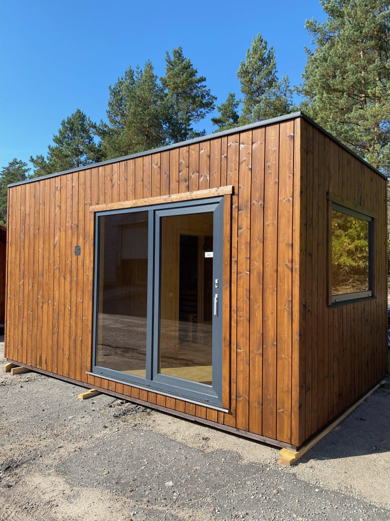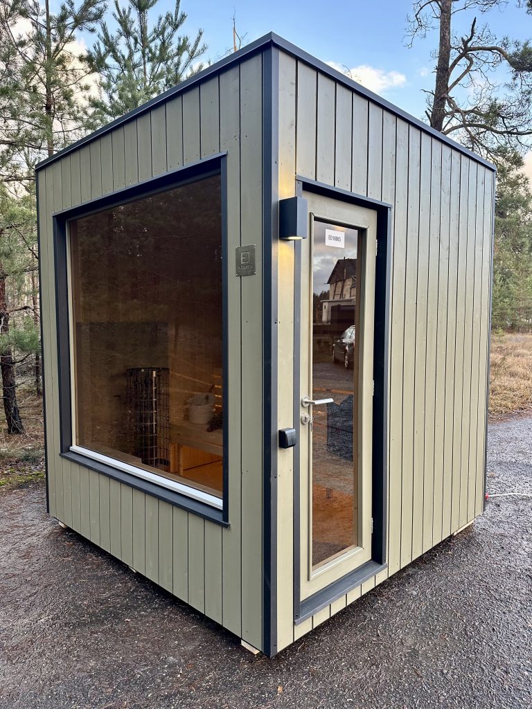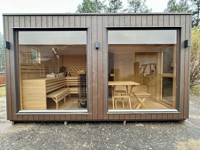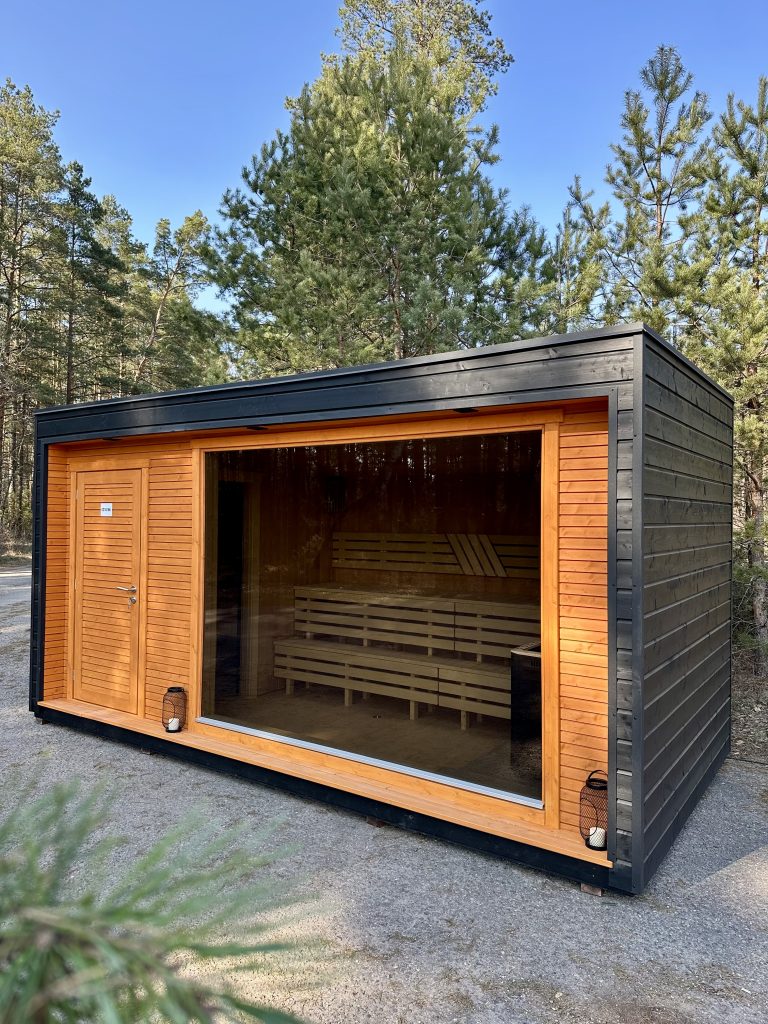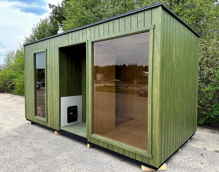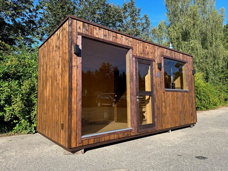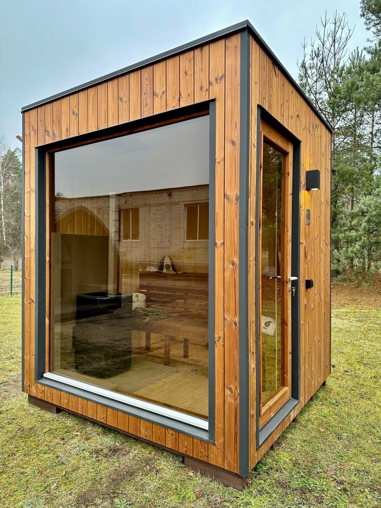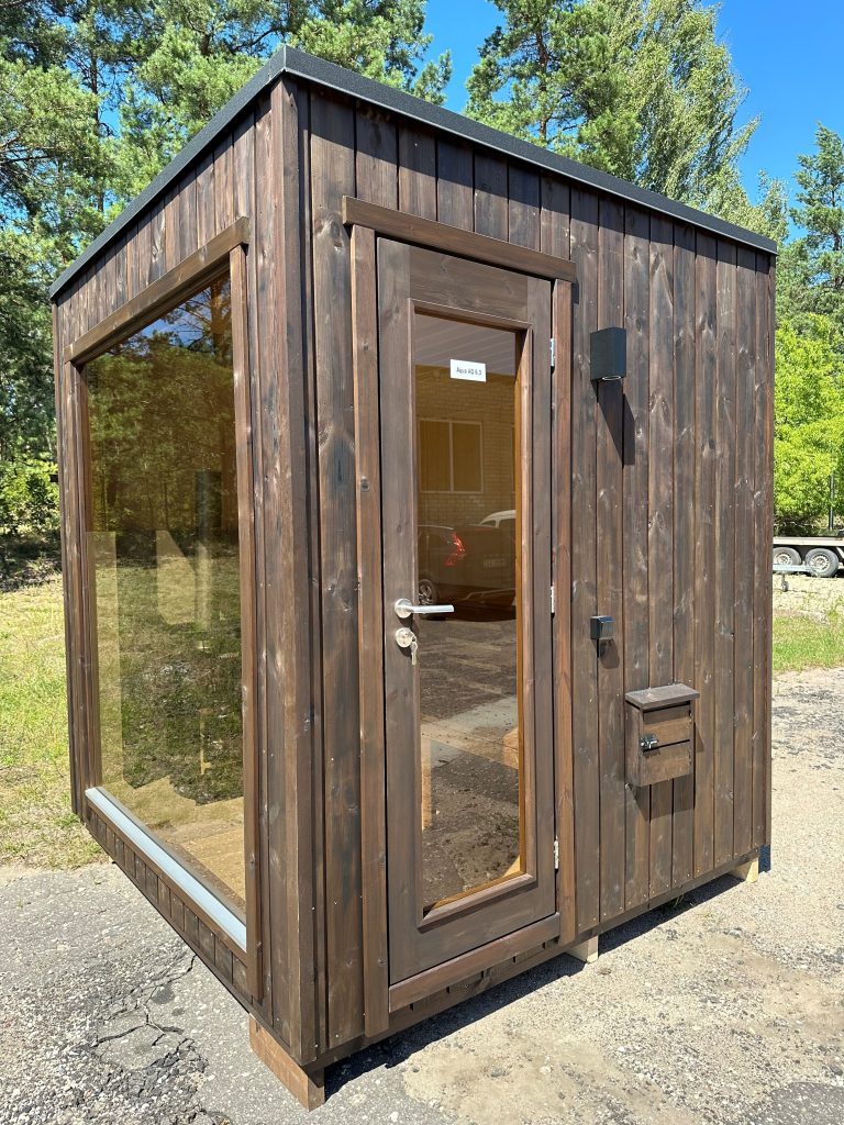 Nauja, modernaus dizaino karkasinė pirtis, kuri pasakiškai atrodys Jūsų kieme. Dideli, bei tamsinti grūdinto stiklo langai šiai saunai suteikia stilingą ir šiuolaikišką išvaizdą. Erdvi ir jauki poilsio zona puikiai tiks susibūrimams, poilsiui ar laisvalaikiui. Taip pat poilsio kambarį galite paversti laikinu svečių miegamuoju arba visą pirtį pakeisti į mobilų biurą. Sauna ,,Moderno‘‘ gali būti pritaikyta visiems Jūsų poreikiams.