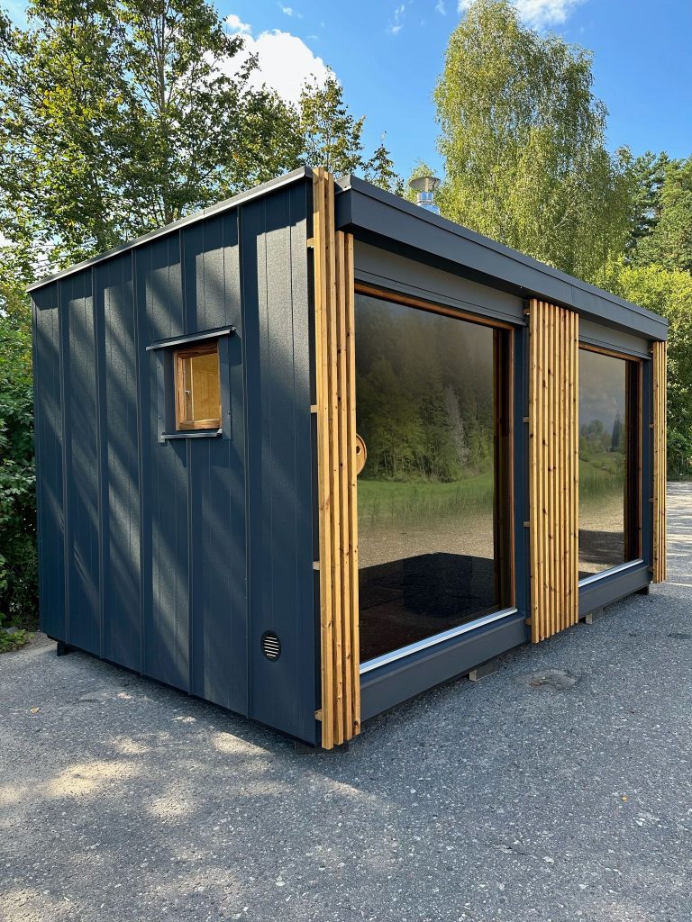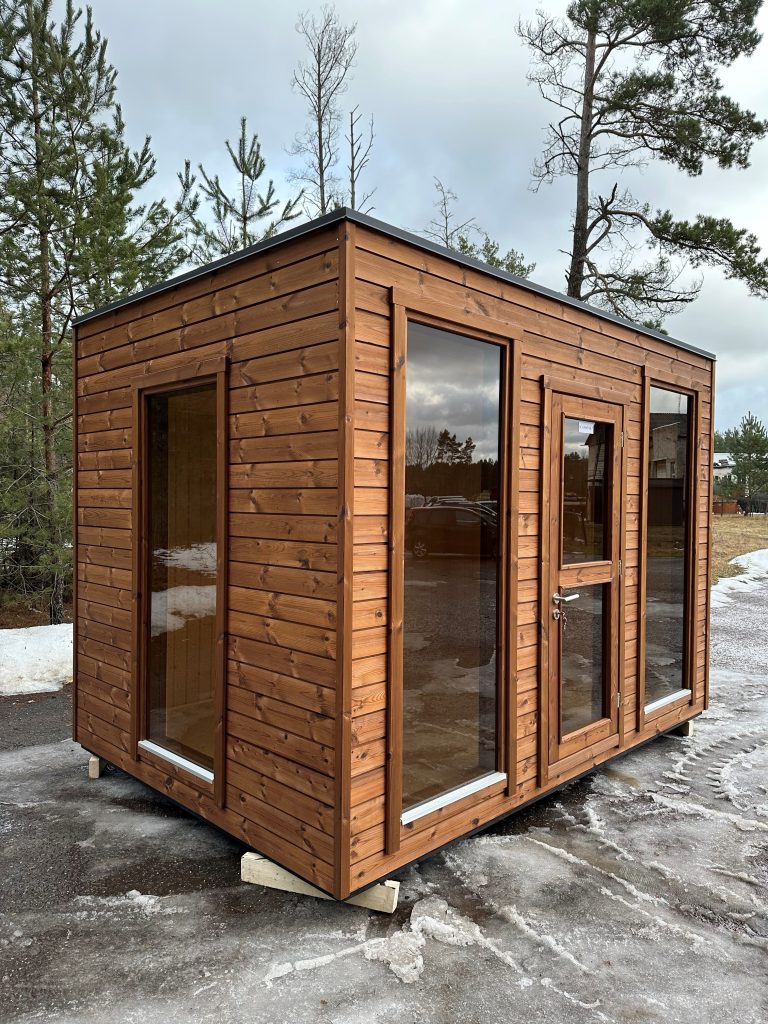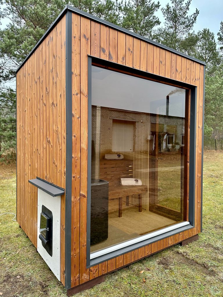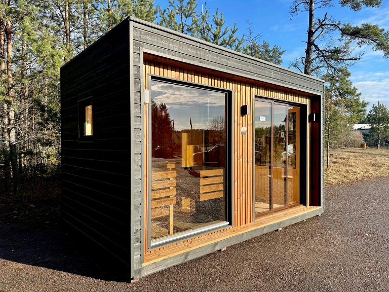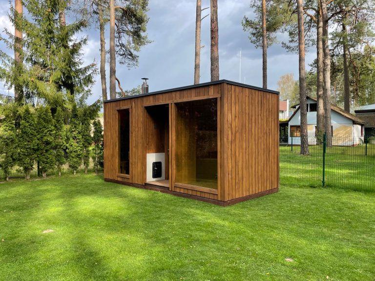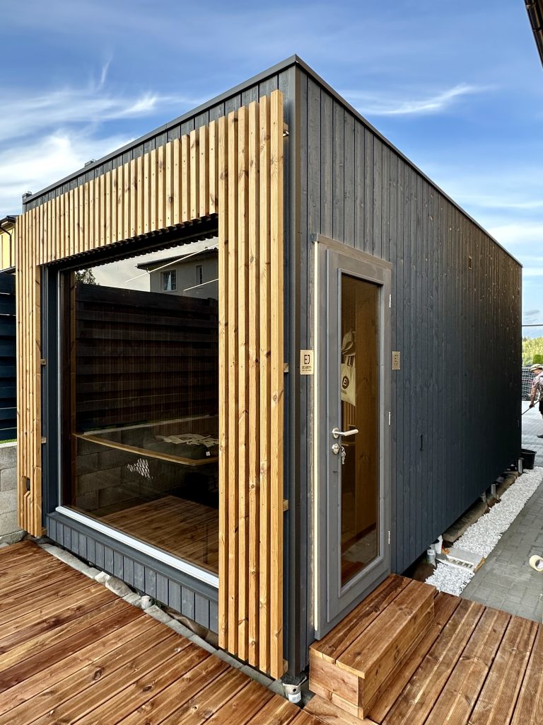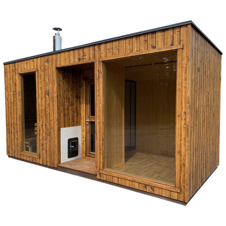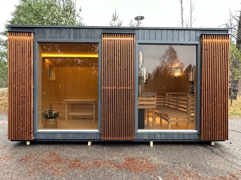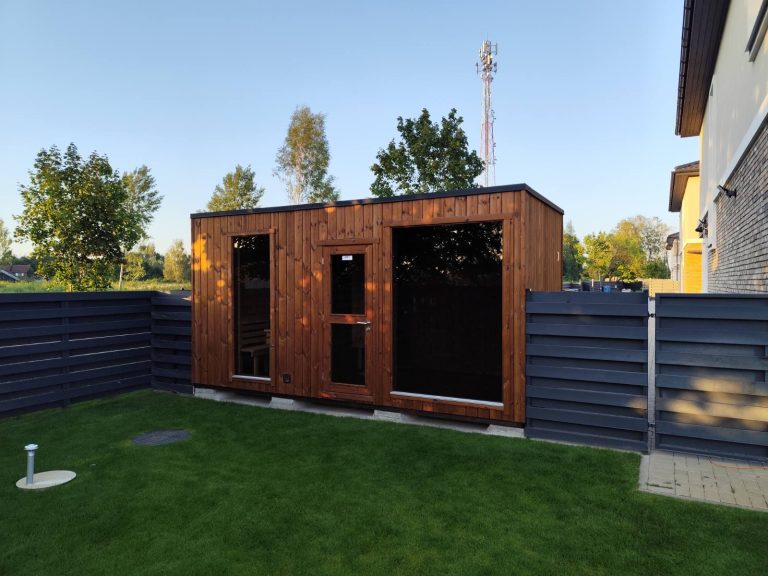 Nauja, modernaus dizaino karkasinė pirtis, kuri pasakiškai atrodys Jūsų kieme. Dideli, bei tamsinti grūdinto stiklo langai šiai saunai suteikia stilingą ir šiuolaikišką išvaizdą. Erdvi ir jauki poilsio zona puikiai tiks susibūrimams, poilsiui ar laisvalaikiui. Taip pat poilsio kambarį galite paversti laikinu svečių miegamuoju arba visą pirtį pakeisti į mobilų biurą. Sauna ,,Moderno‘‘ gali būti pritaikyta visiems Jūsų poreikiams.