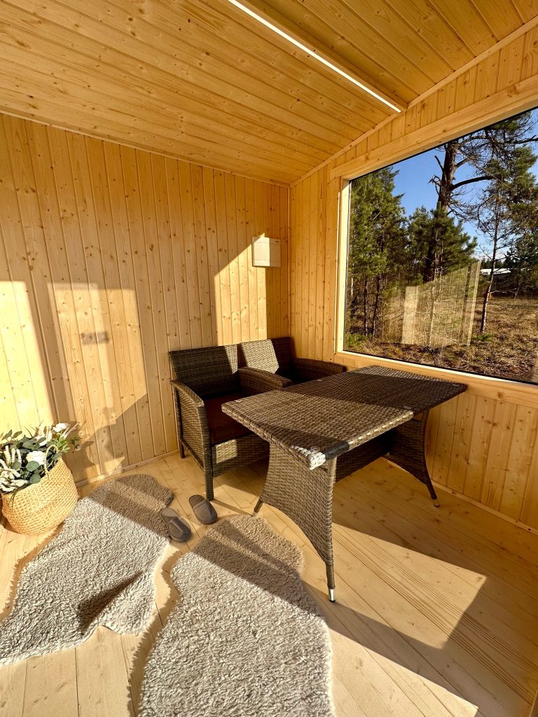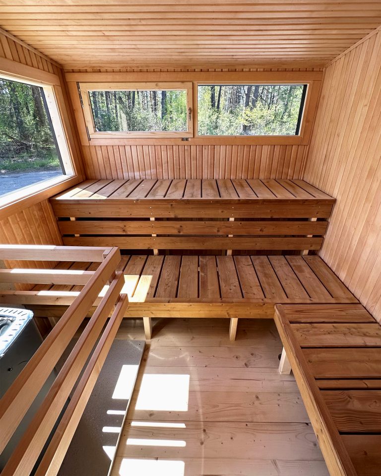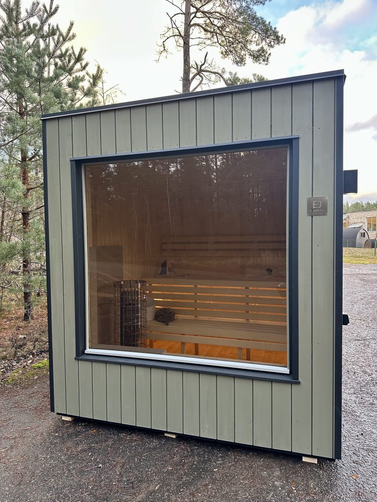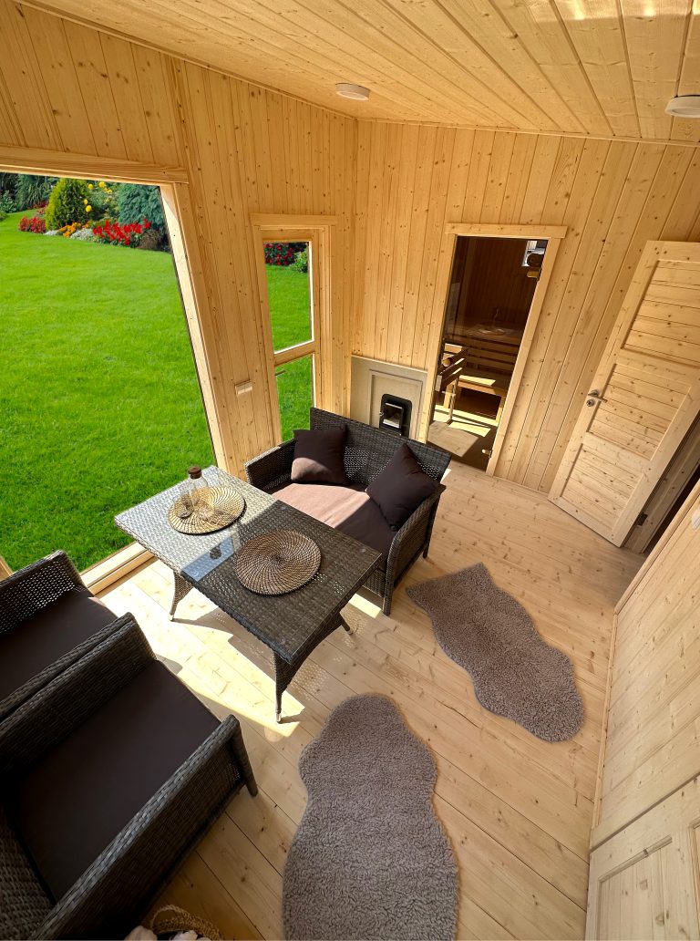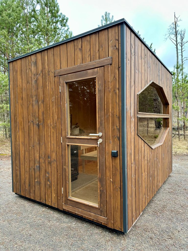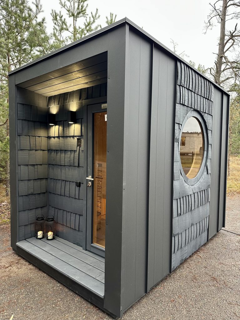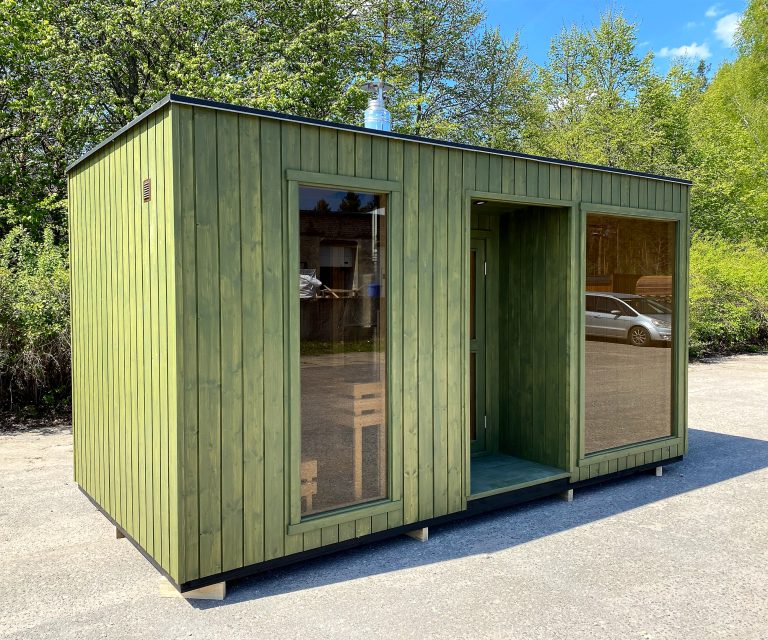Nauja, modernaus dizaino karkasinė pirtis, kuri pasakiškai atrodys Jūsų kieme. Dideli, bei tamsinti grūdinto stiklo langai šiai saunai suteikia stilingą ir šiuolaikišką išvaizdą. Erdvi ir jauki poilsio zona puikiai tiks susibūrimams, poilsiui ar laisvalaikiui. Taip pat poilsio kambarį galite paversti laikinu svečių miegamuoju arba visą pirtį pakeisti į mobilų biurą. Sauna ,,Moderno‘‘ gali būti pritaikyta visiems Jūsų poreikiams.