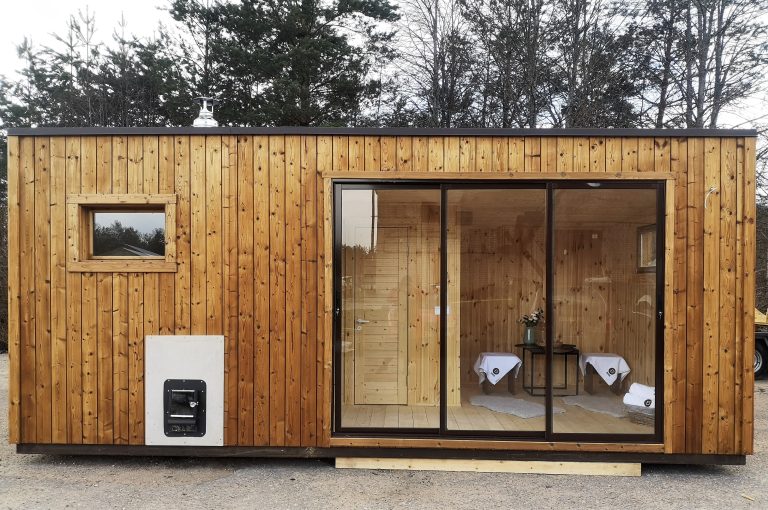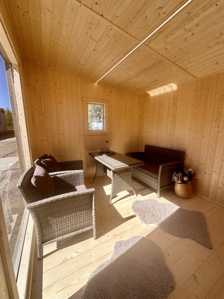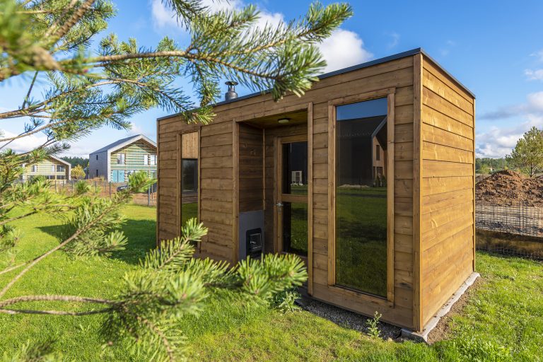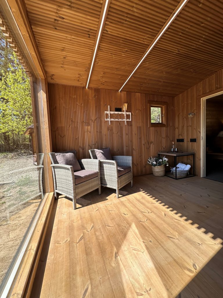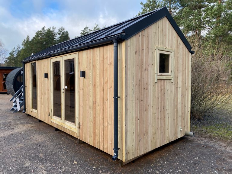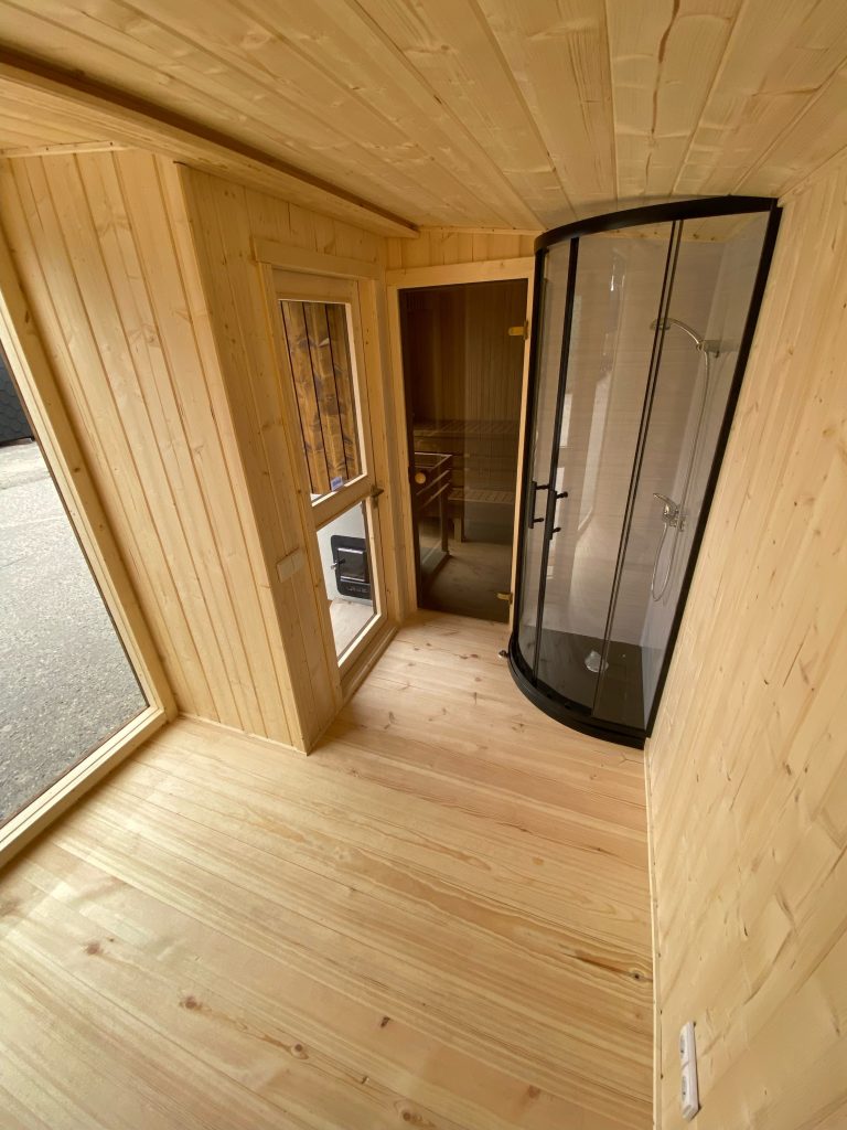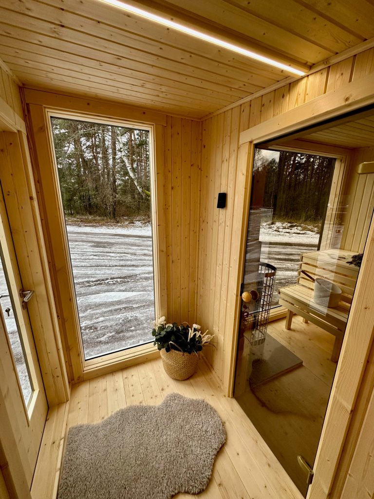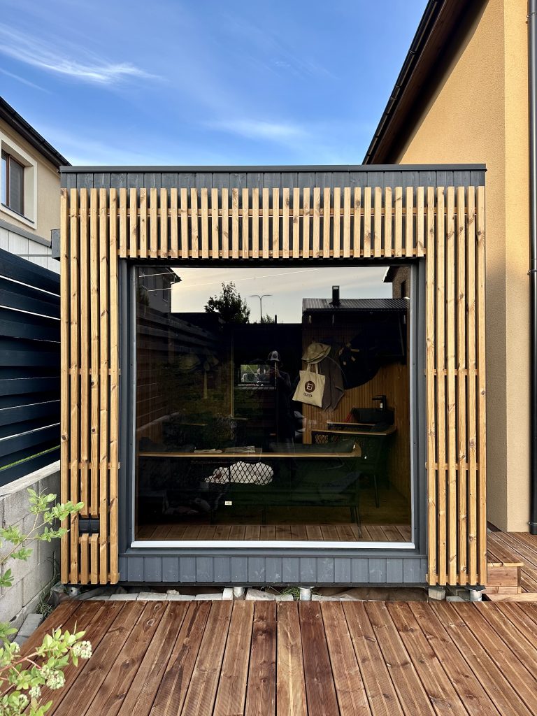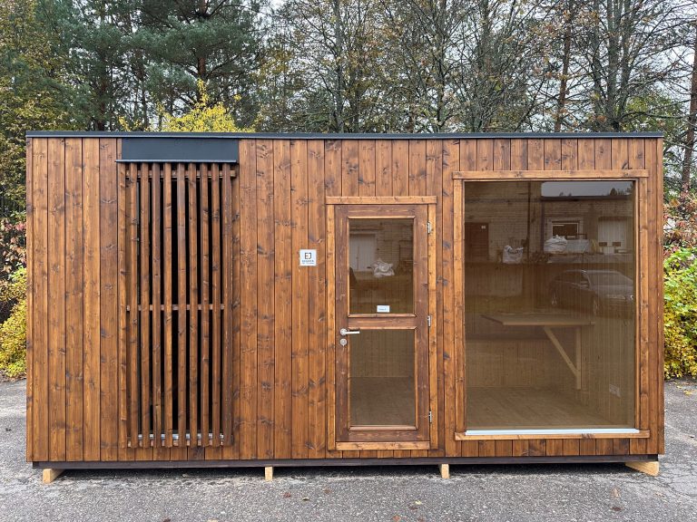 Nauja, modernaus dizaino karkasinė pirtis, kuri pasakiškai atrodys Jūsų kieme. Dideli, bei tamsinti grūdinto stiklo langai šiai saunai suteikia stilingą ir šiuolaikišką išvaizdą. Erdvi ir jauki poilsio zona puikiai tiks susibūrimams, poilsiui ar laisvalaikiui. Taip pat poilsio kambarį galite paversti laikinu svečių miegamuoju arba visą pirtį pakeisti į mobilų biurą. Sauna ,,Moderno‘‘ gali būti pritaikyta visiems Jūsų poreikiams.
