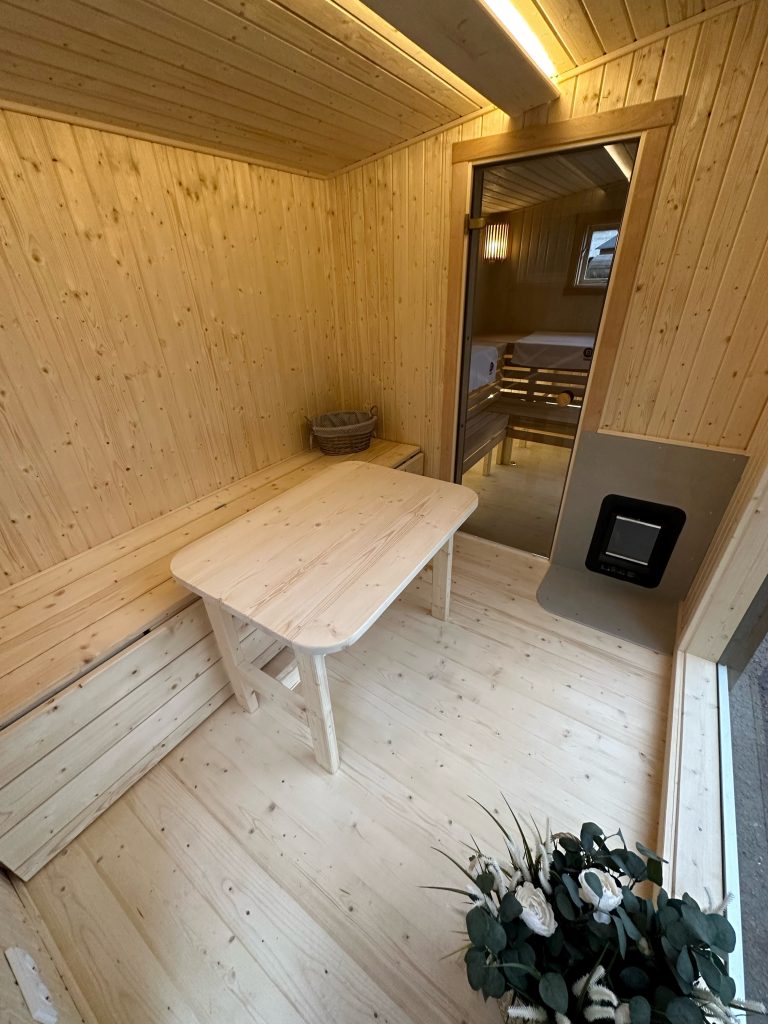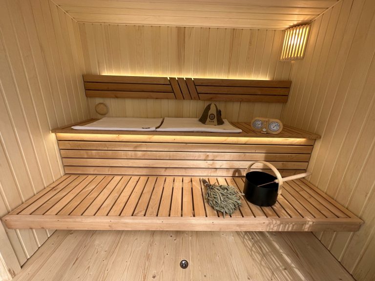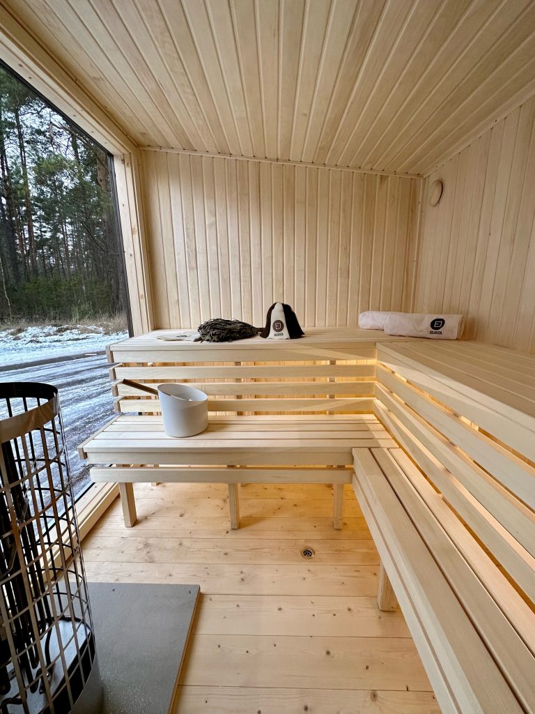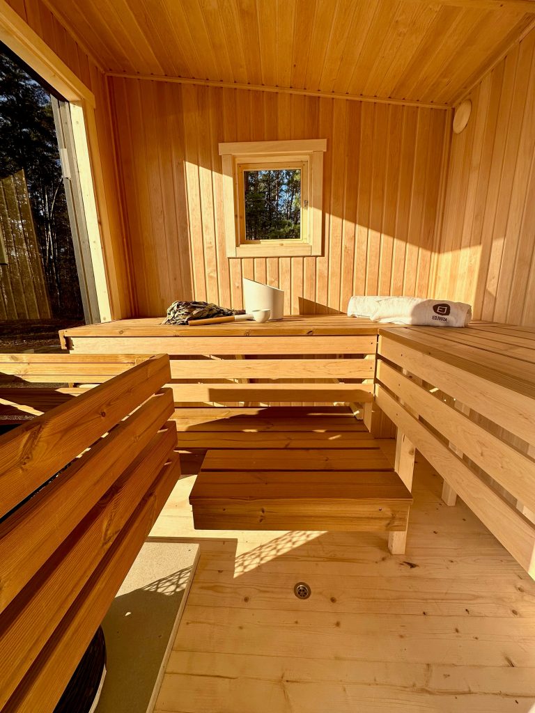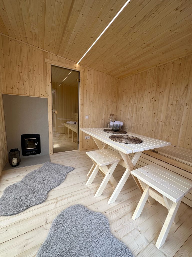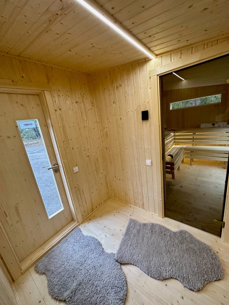 - LED apšvietimas po suolais saunos patalpoje.