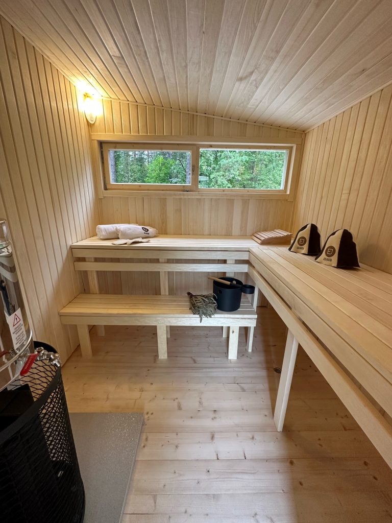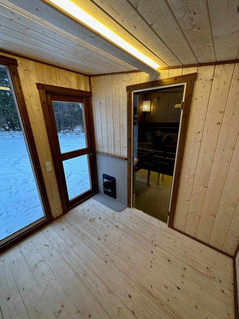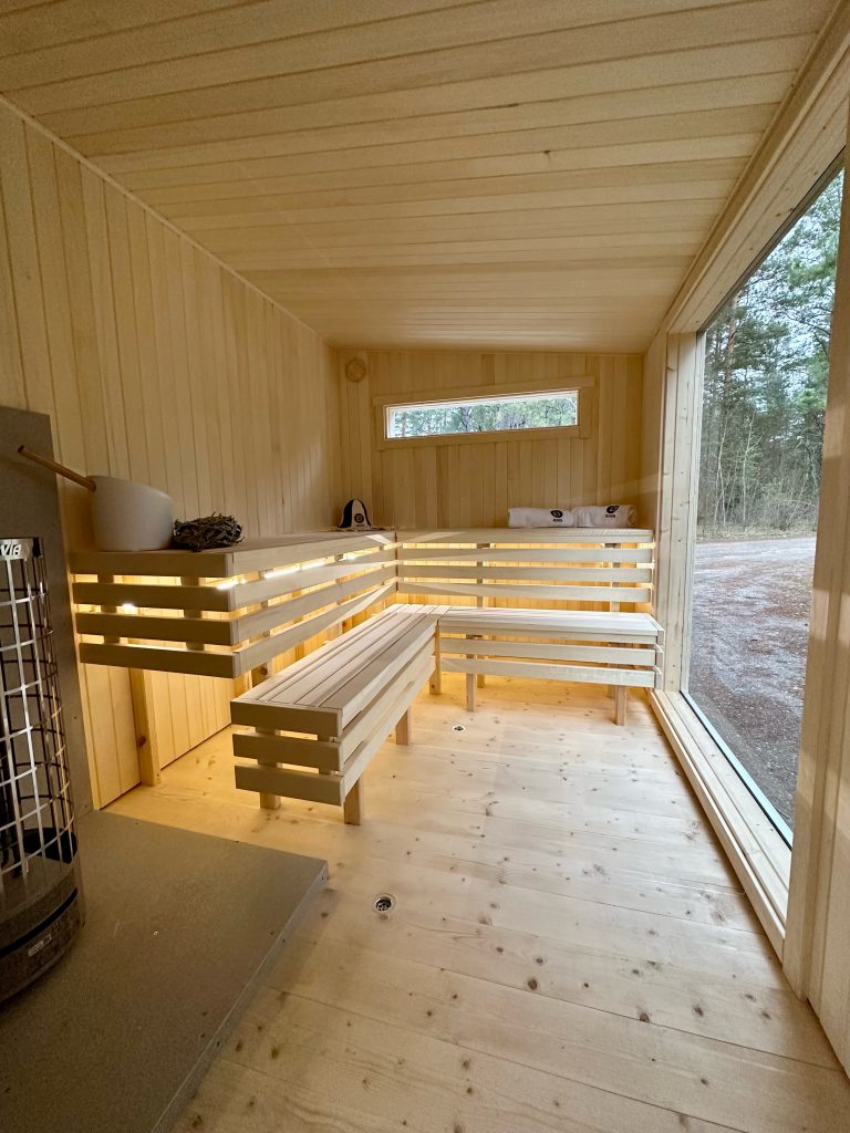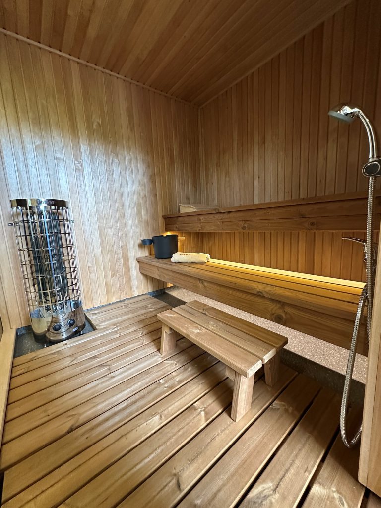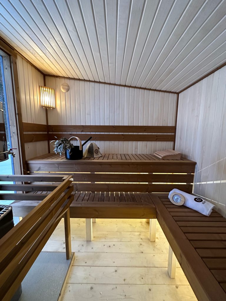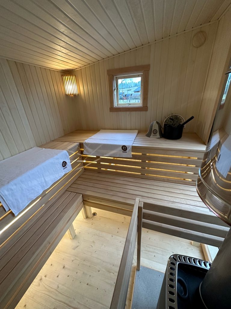 - LED apšvietimas po suolais saunos patalpoje.