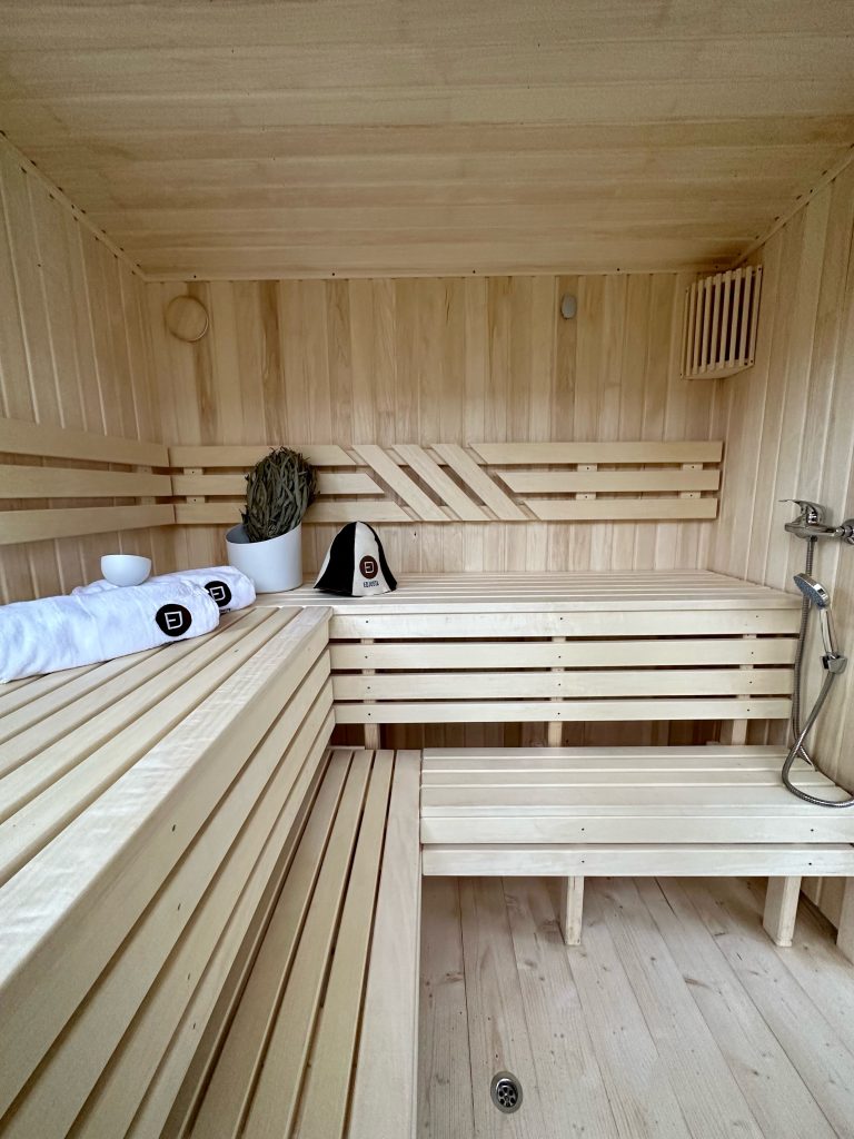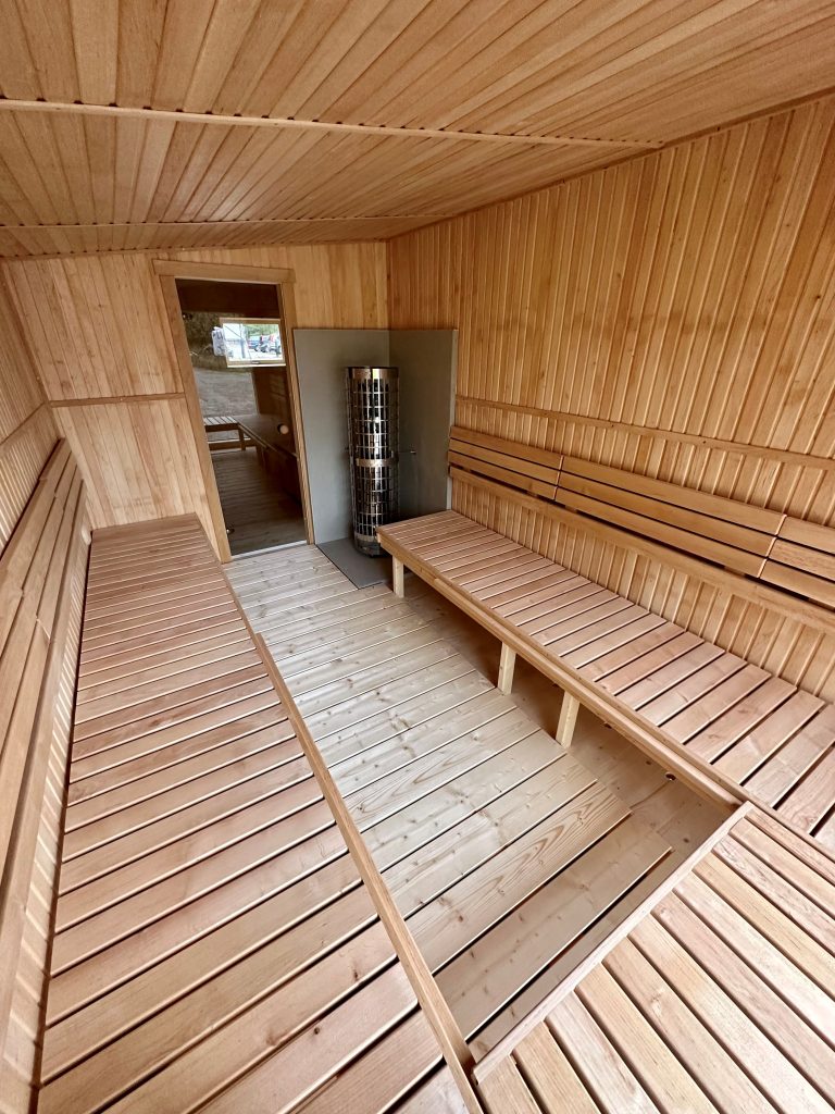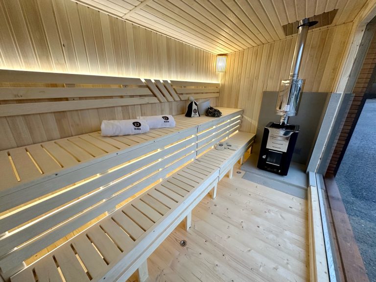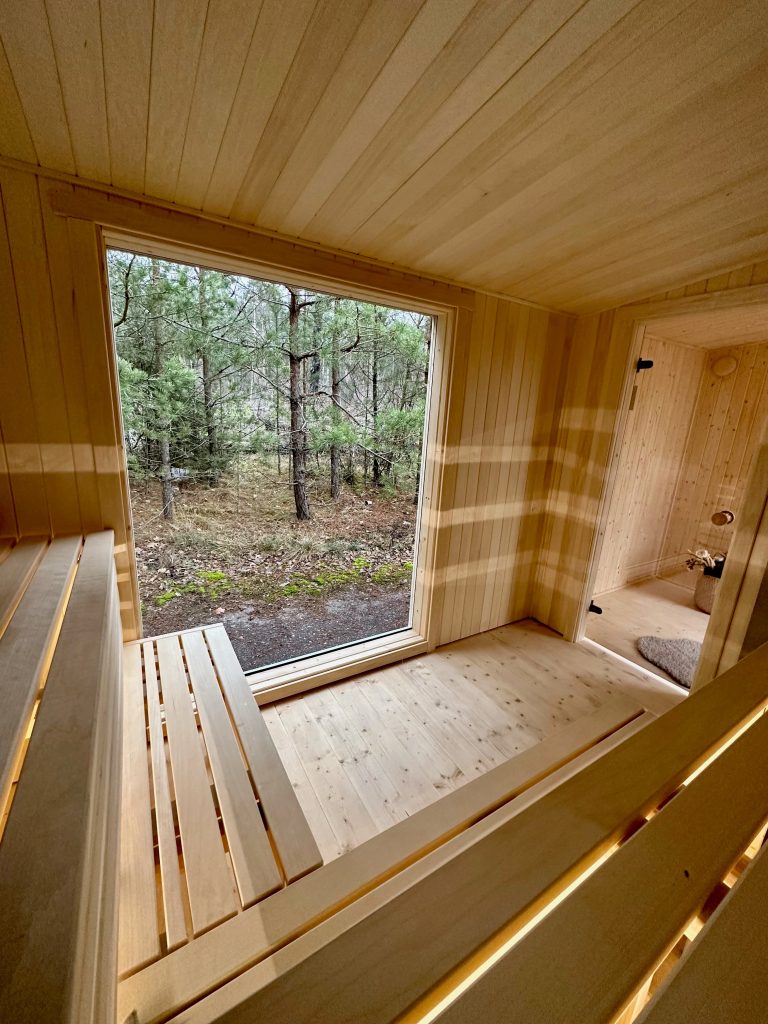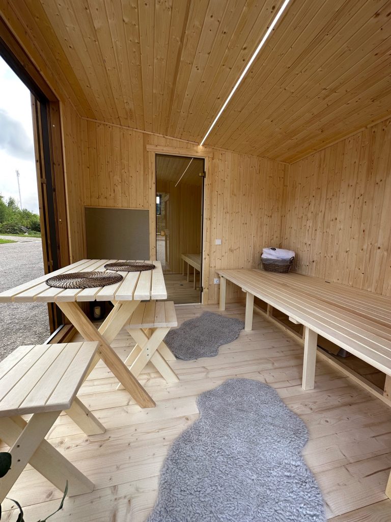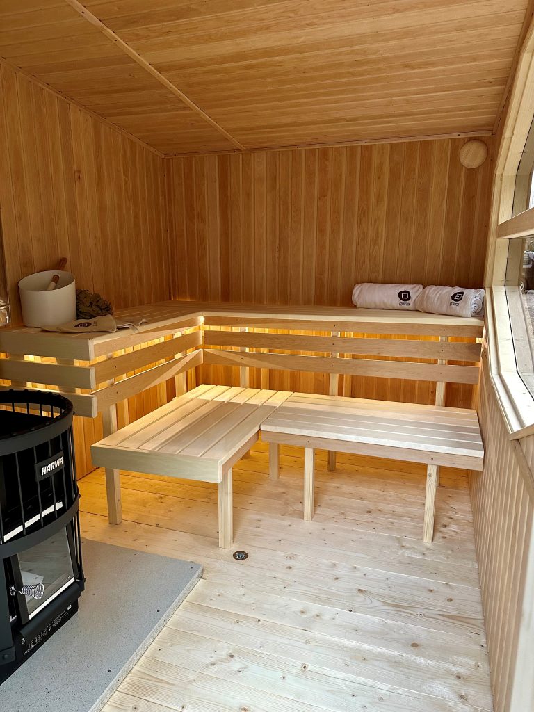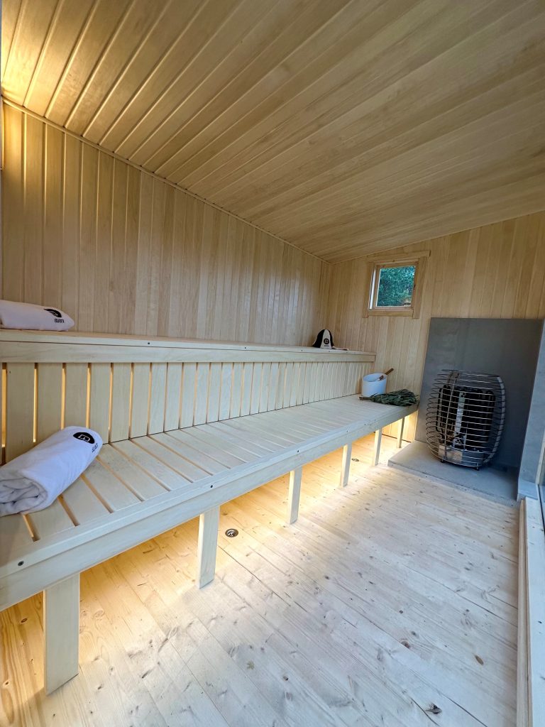 - LED apšvietimas po suolais saunos patalpoje.