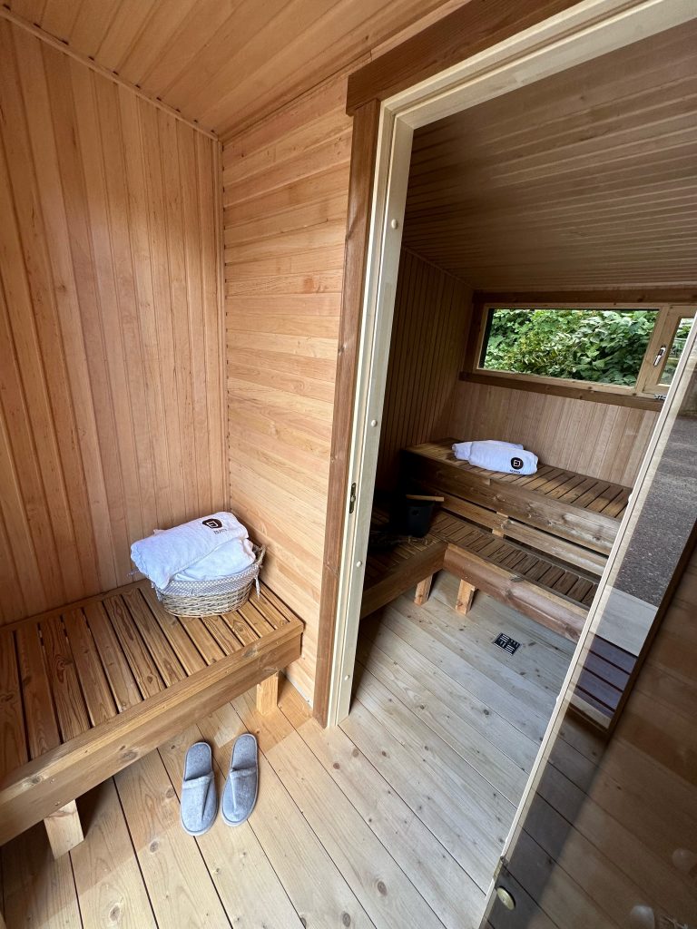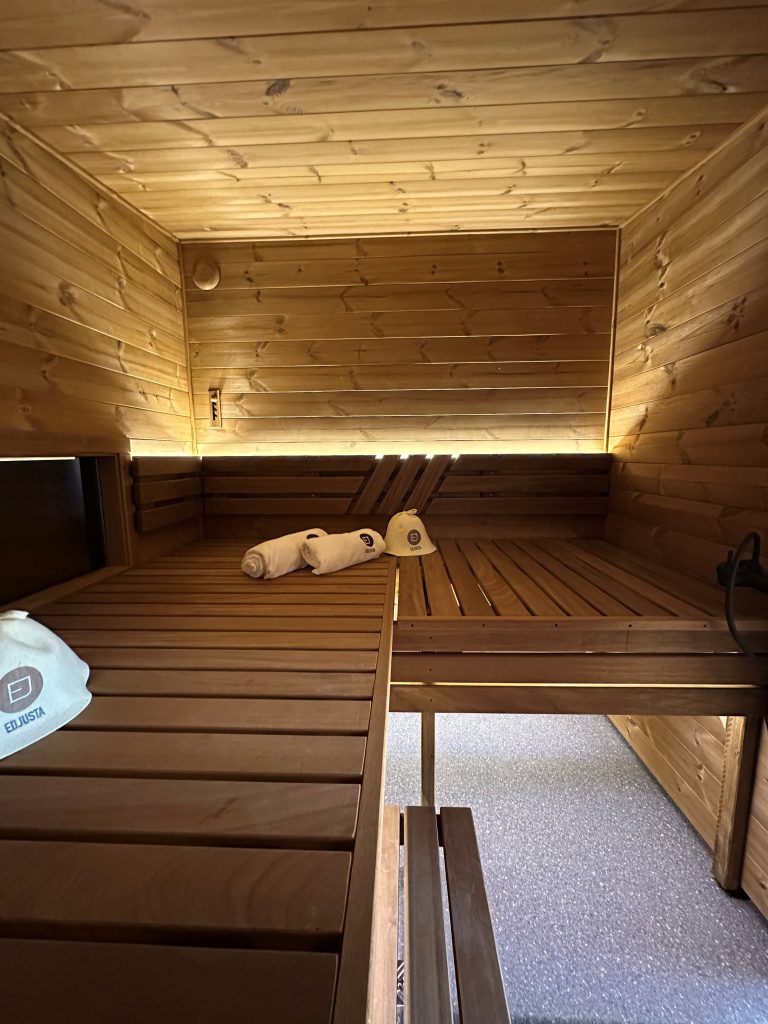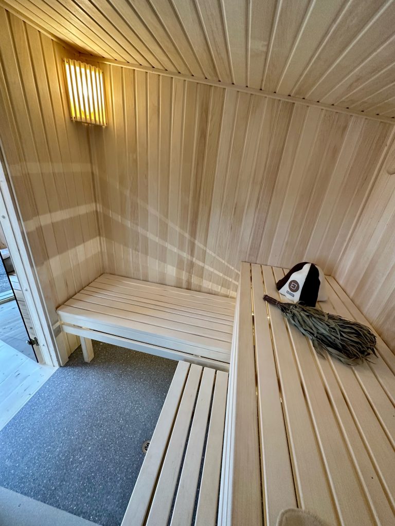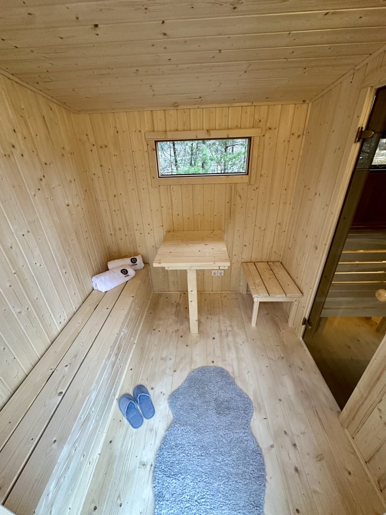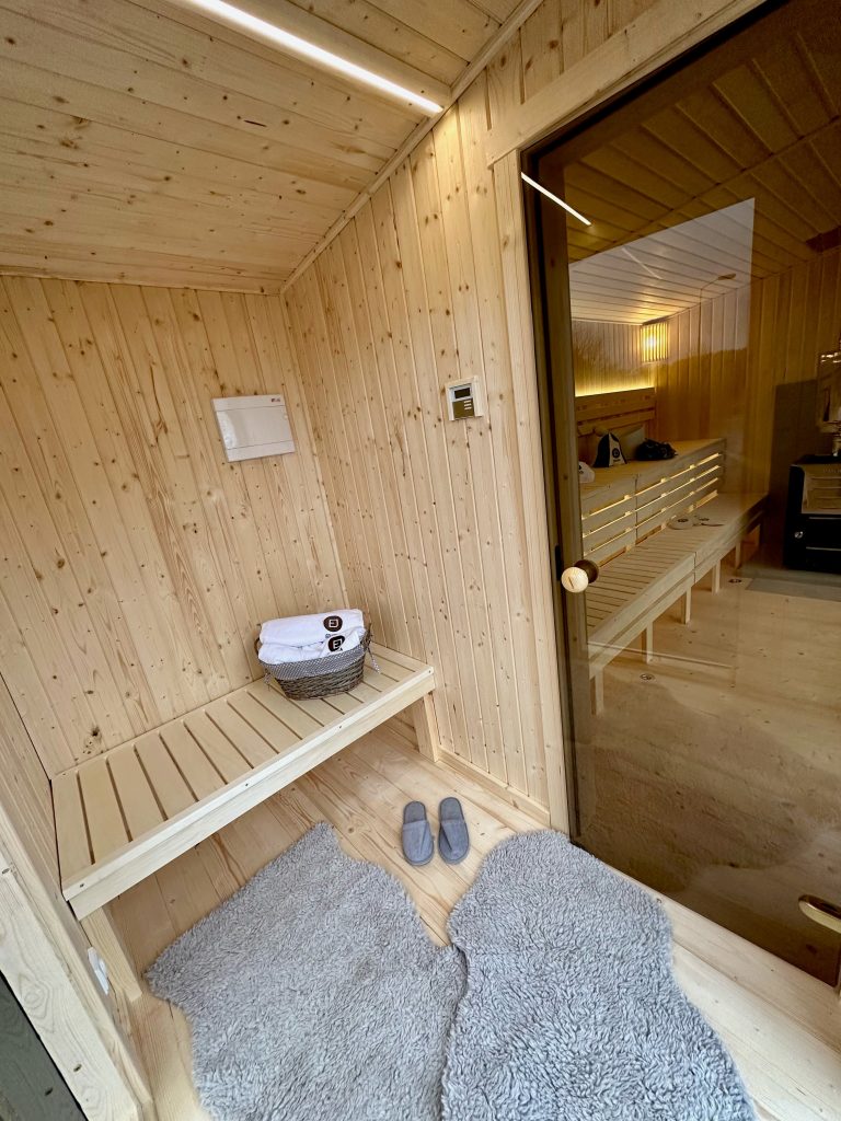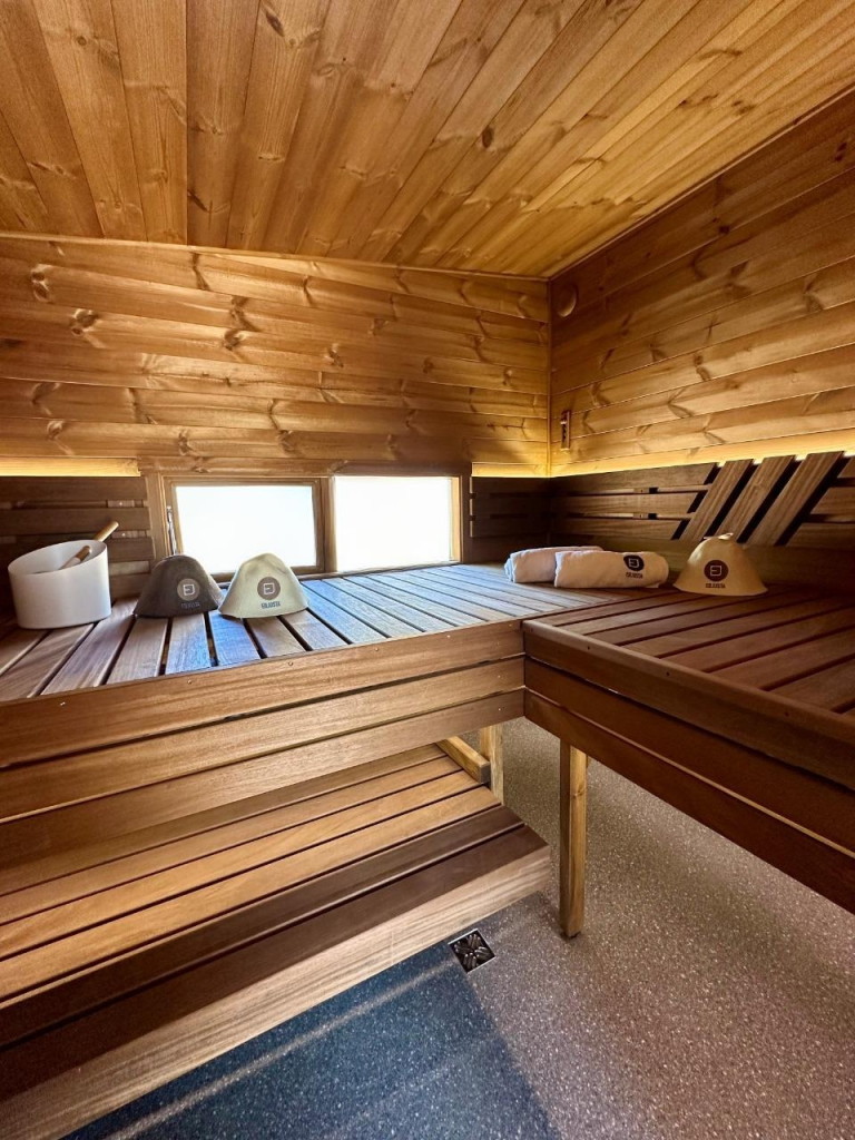 - LED apšvietimas po suolais saunos patalpoje.