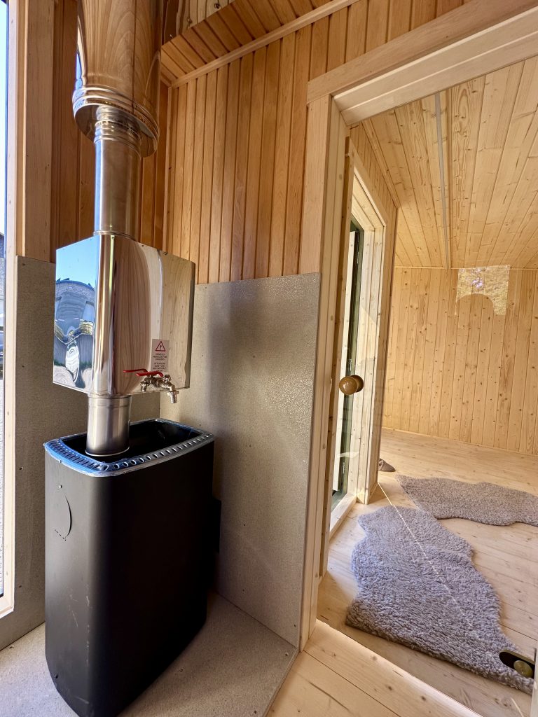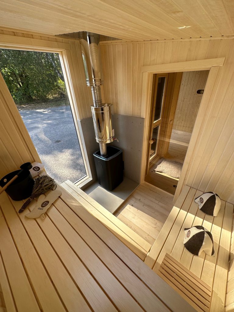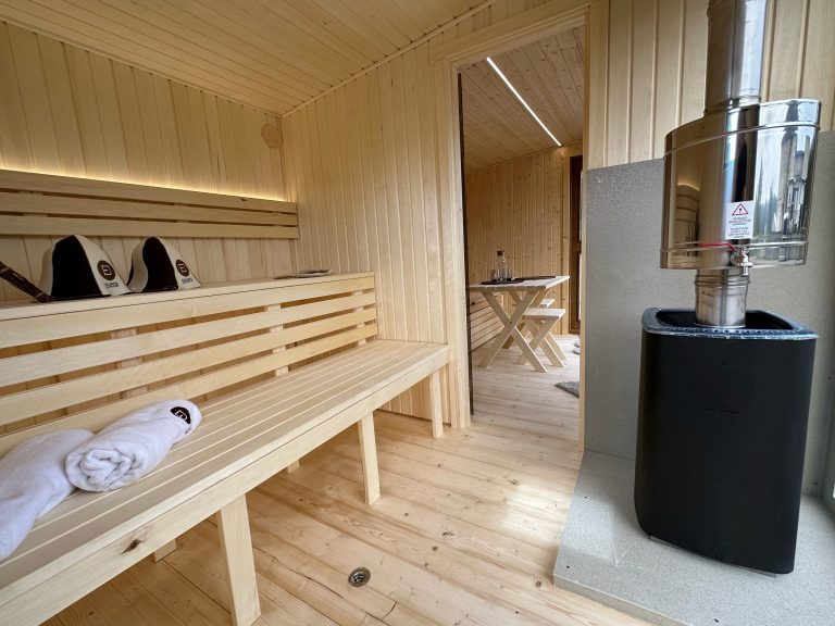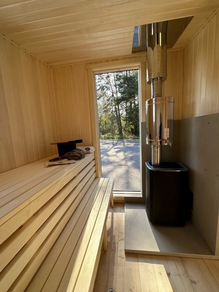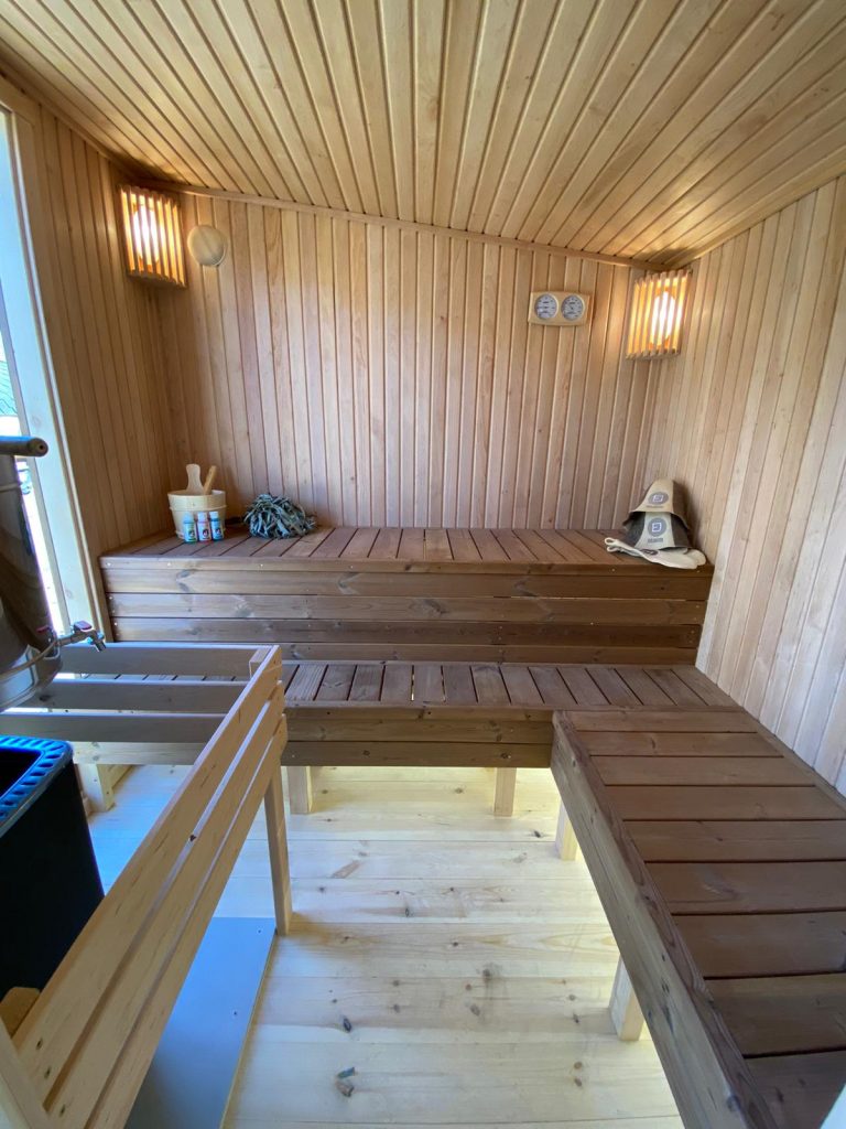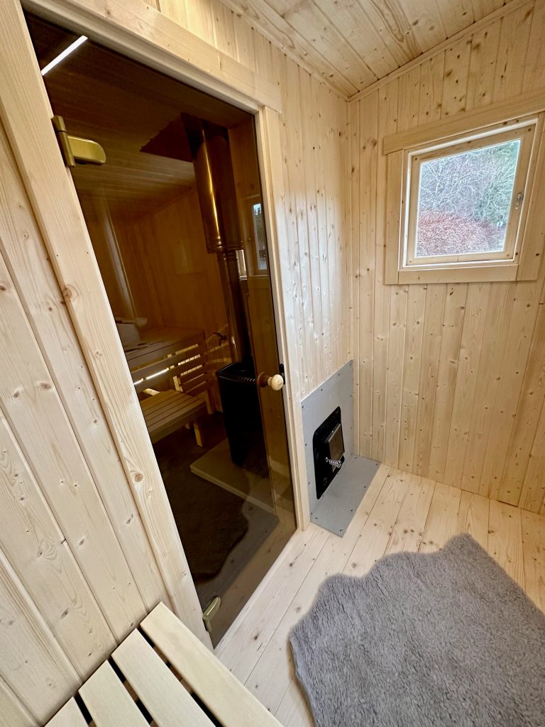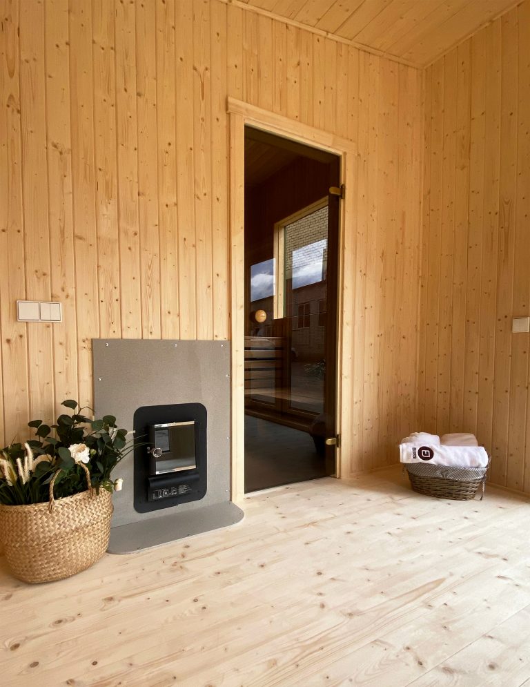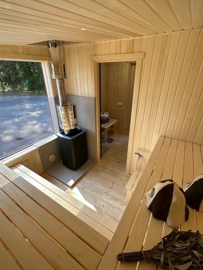 - Malkų krosnelė su išorės pakūra lauke arba persirengimo kambaryje.