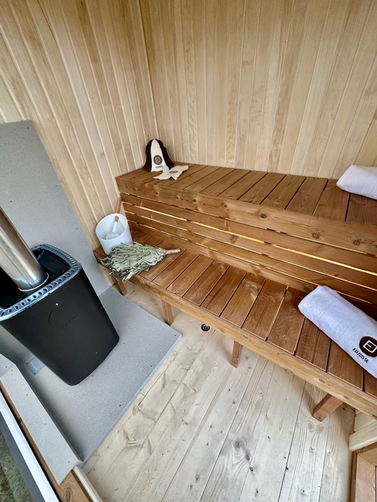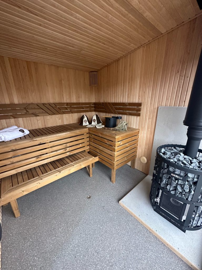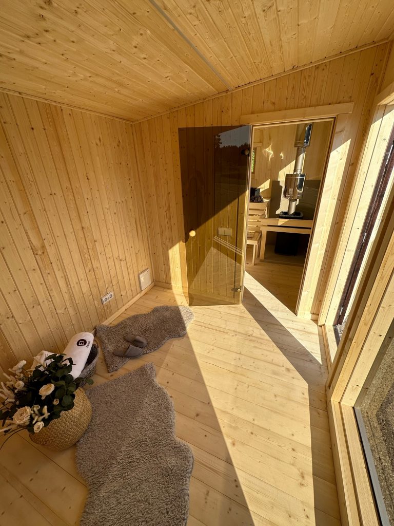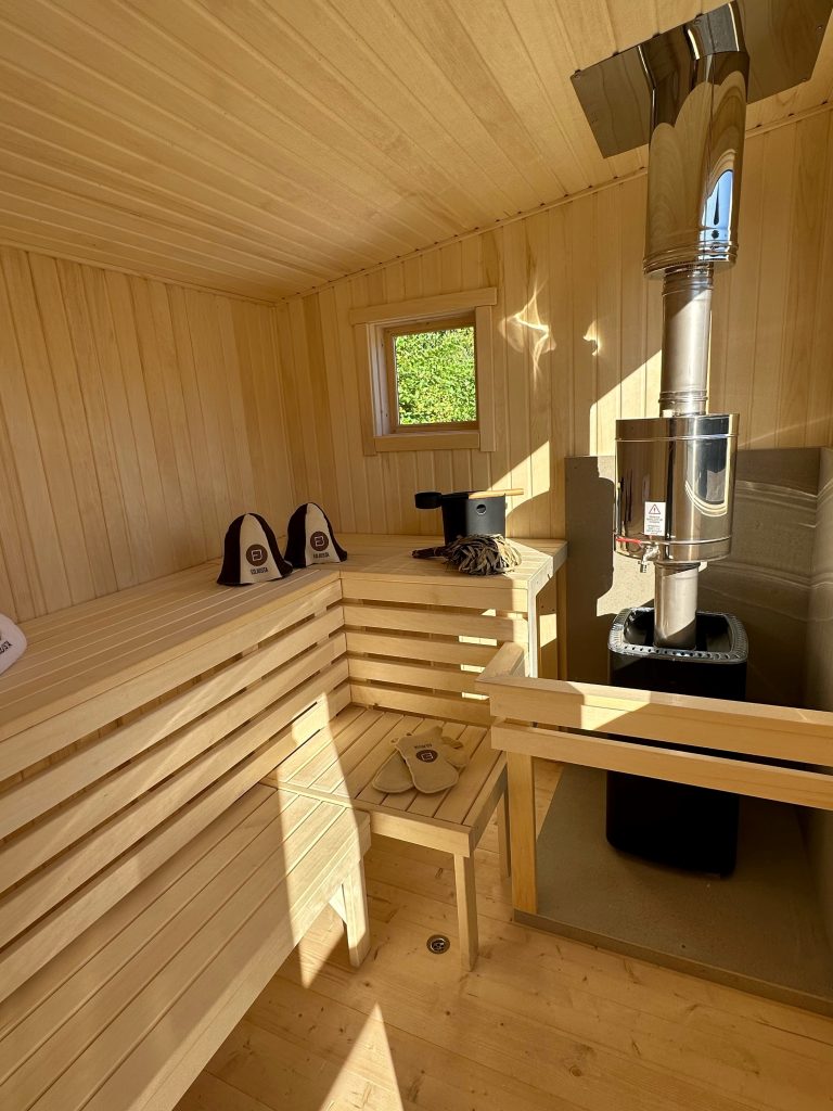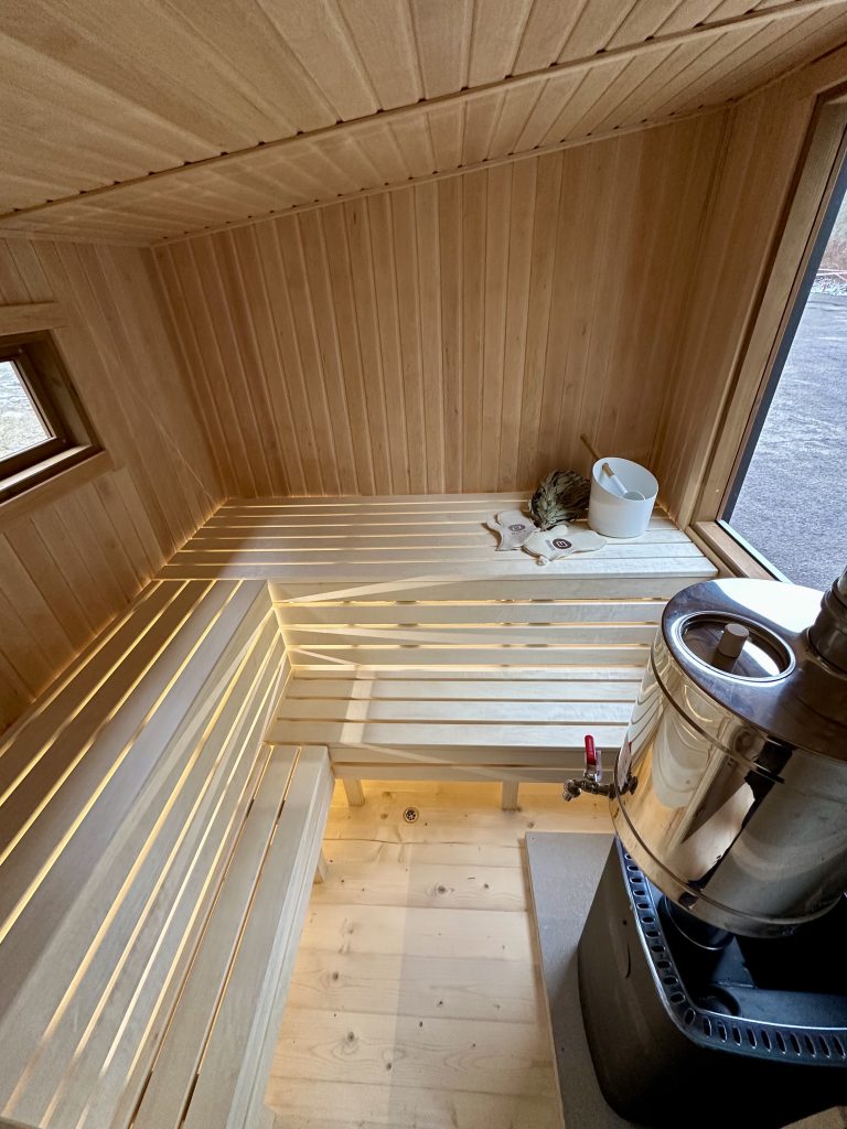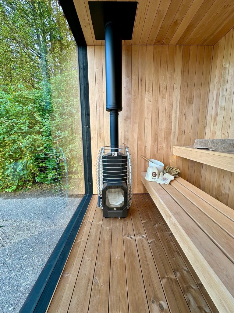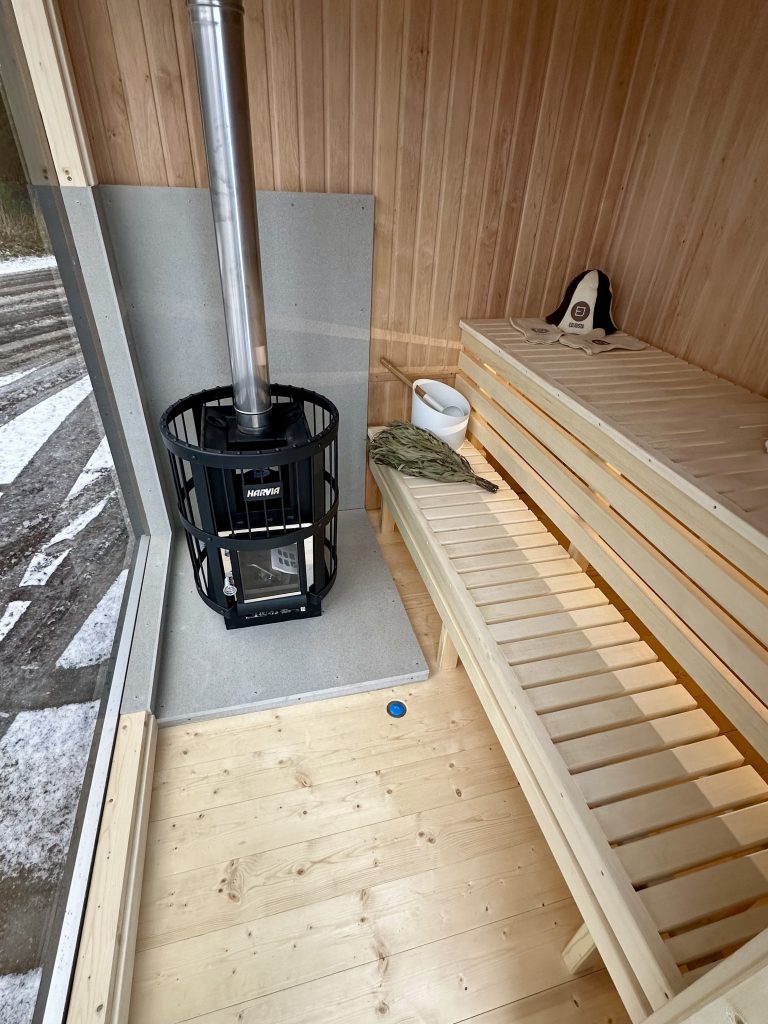 - Malkų krosnelė su išorės pakūra lauke arba persirengimo kambaryje.