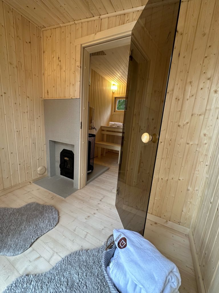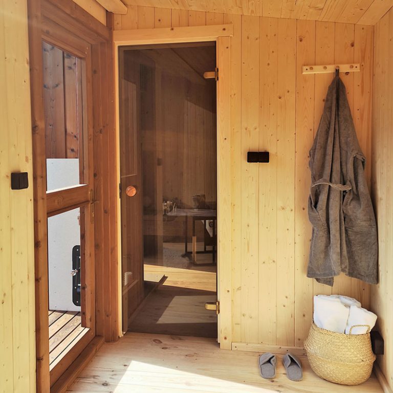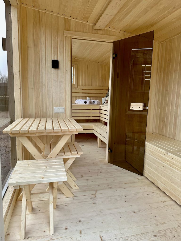 - Stiklinės saunos durys.