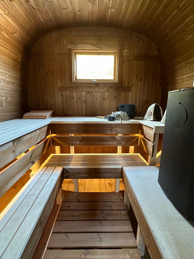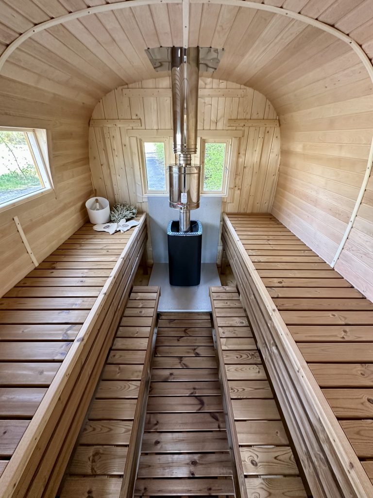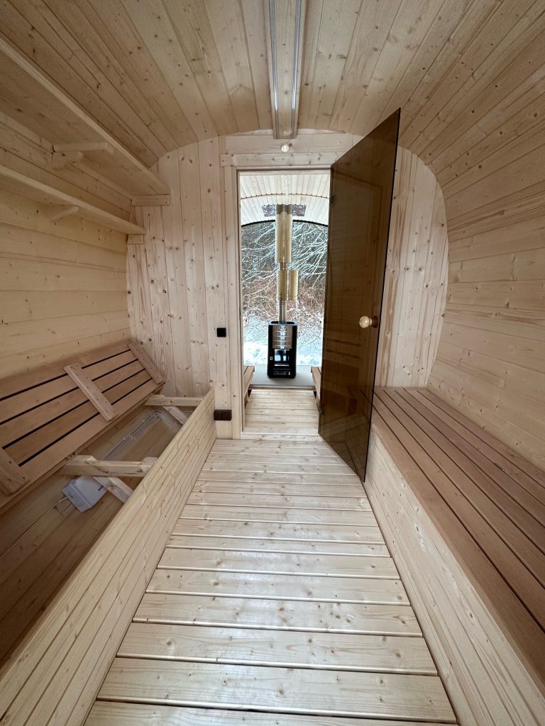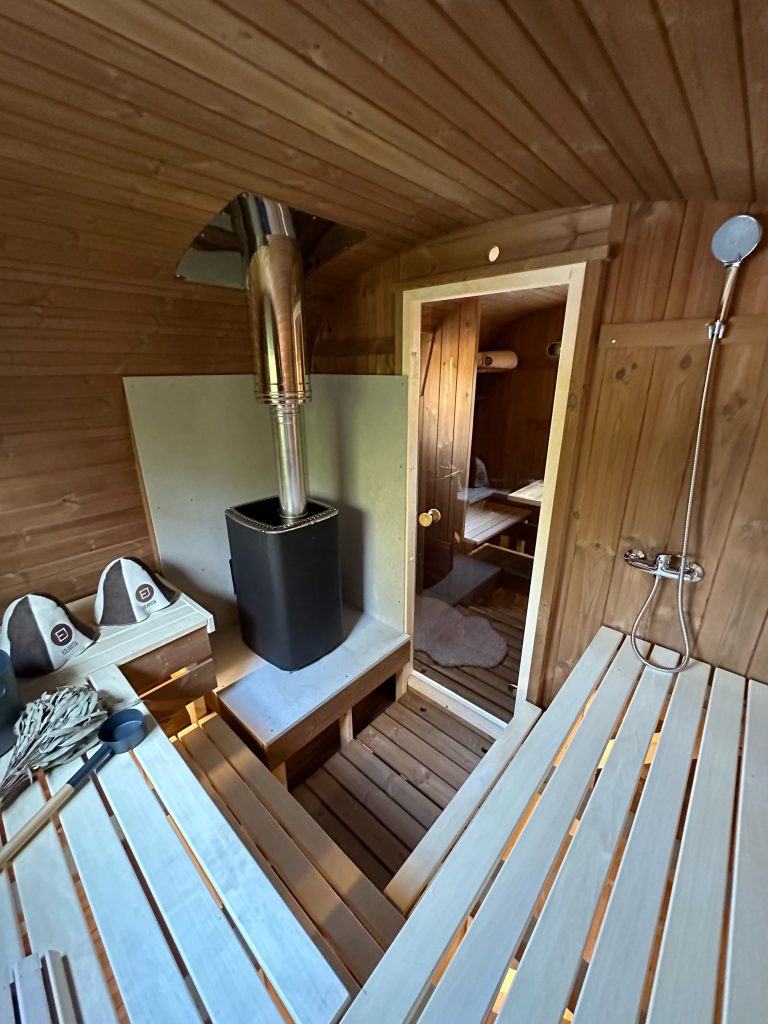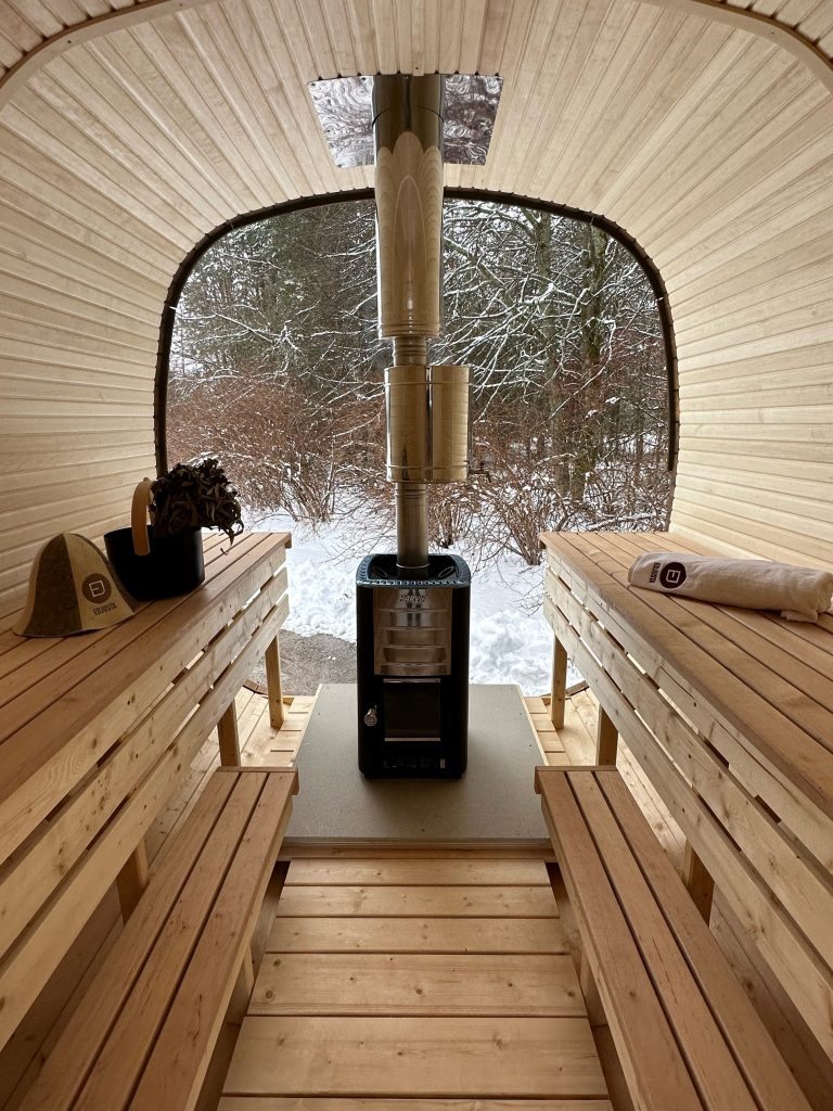 - Malkų krosnelė su išorės pakūra lauke arba persirengimo kambaryje.