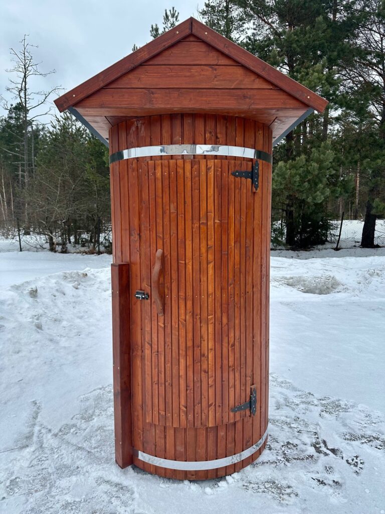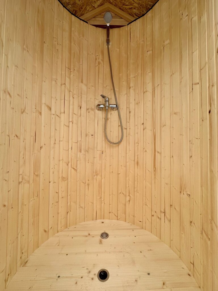 Medinė lauko dušo kabina lengvai papildys jūsų pirtį, kubilą arba, tiesiog, puikiai atrodys ir viena. Ji gali būti pagaminta iš aukštos kokybės skandinaviškos eglės ir termomedžio. Dušas yra patvarus ir nereikalauja ypatingos priežiūros. Jis apsaugotas nuo drėgmės ir aplinkos poveikio. Šaltas dušas yra patogus sprendimas karšto pirtinimosi metu. Maudymosi kabina neužima daug vietos. Jos dizainas leidžia ją pastatyti vidiniame kieme arba integruoti su baseinu ar lauko mediniu kubilu. Šį lauko dušą galima nesunkiai prijungti prie bet kurio vandens šildytuvo – saulės energija šildomo vandens boilerio ar kitų vandens šildymo sistemų.
